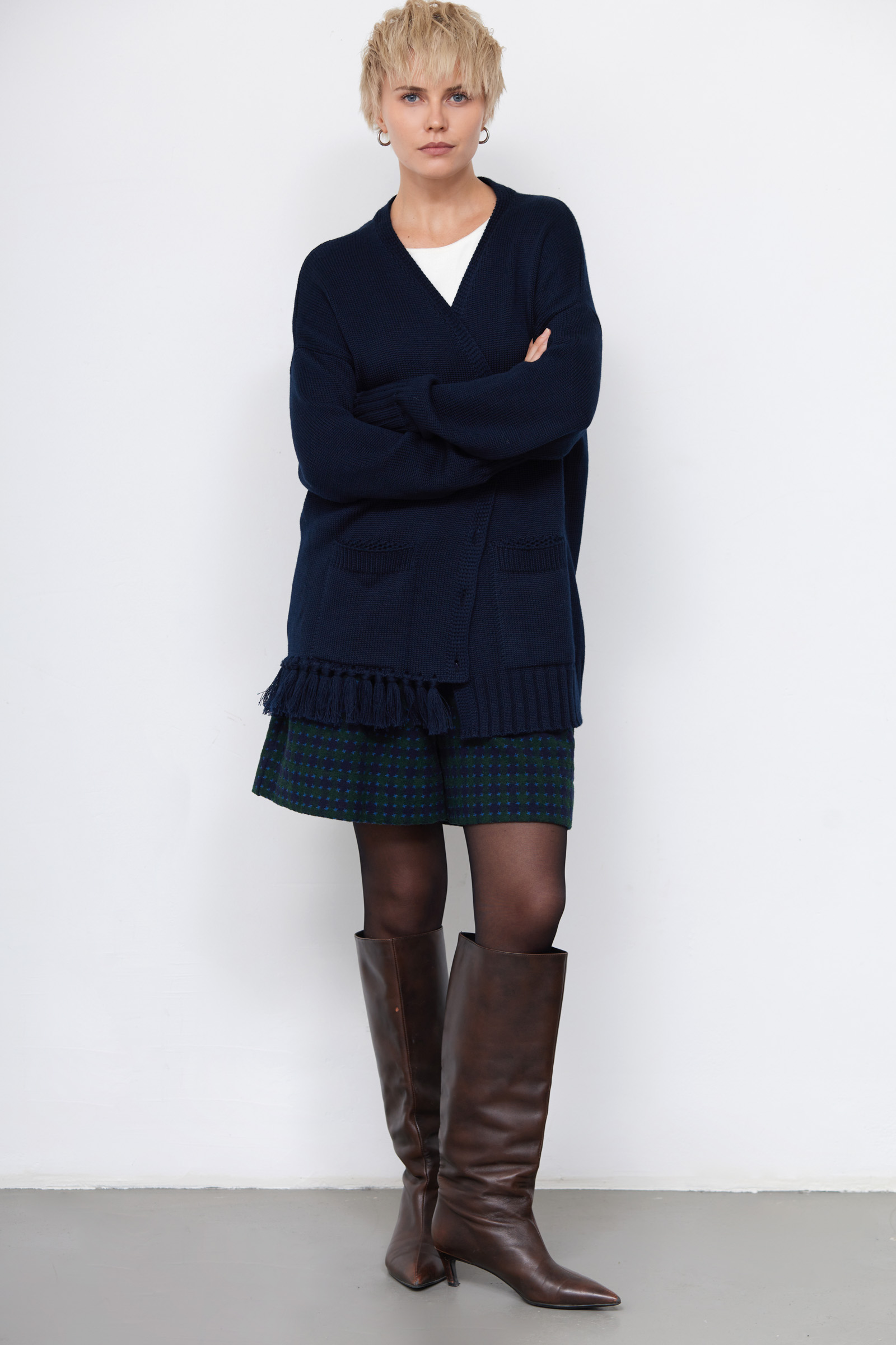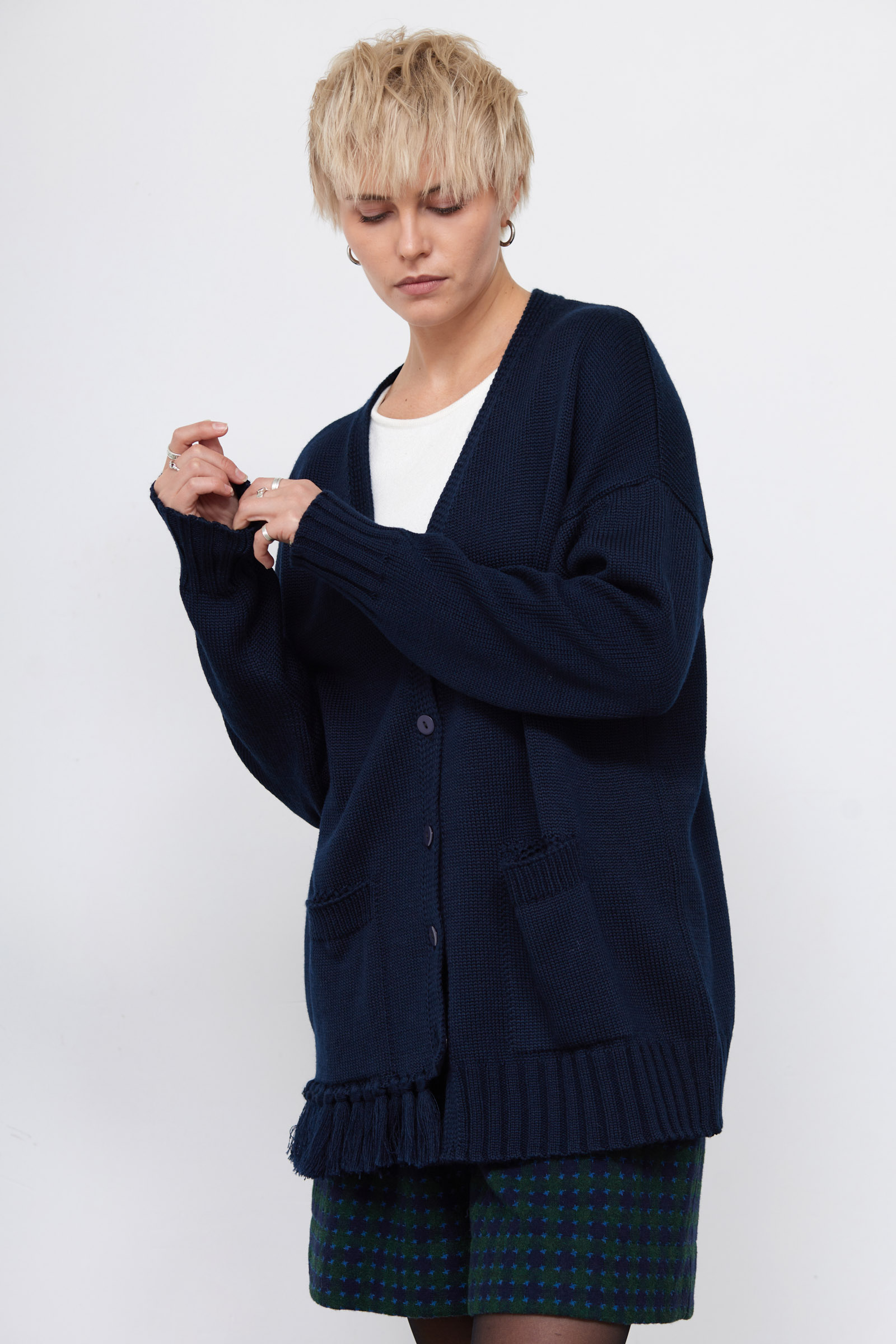 Кардиган oversize из мягкого вязаного трикотажа с шерстью и декором в виде кисточек.