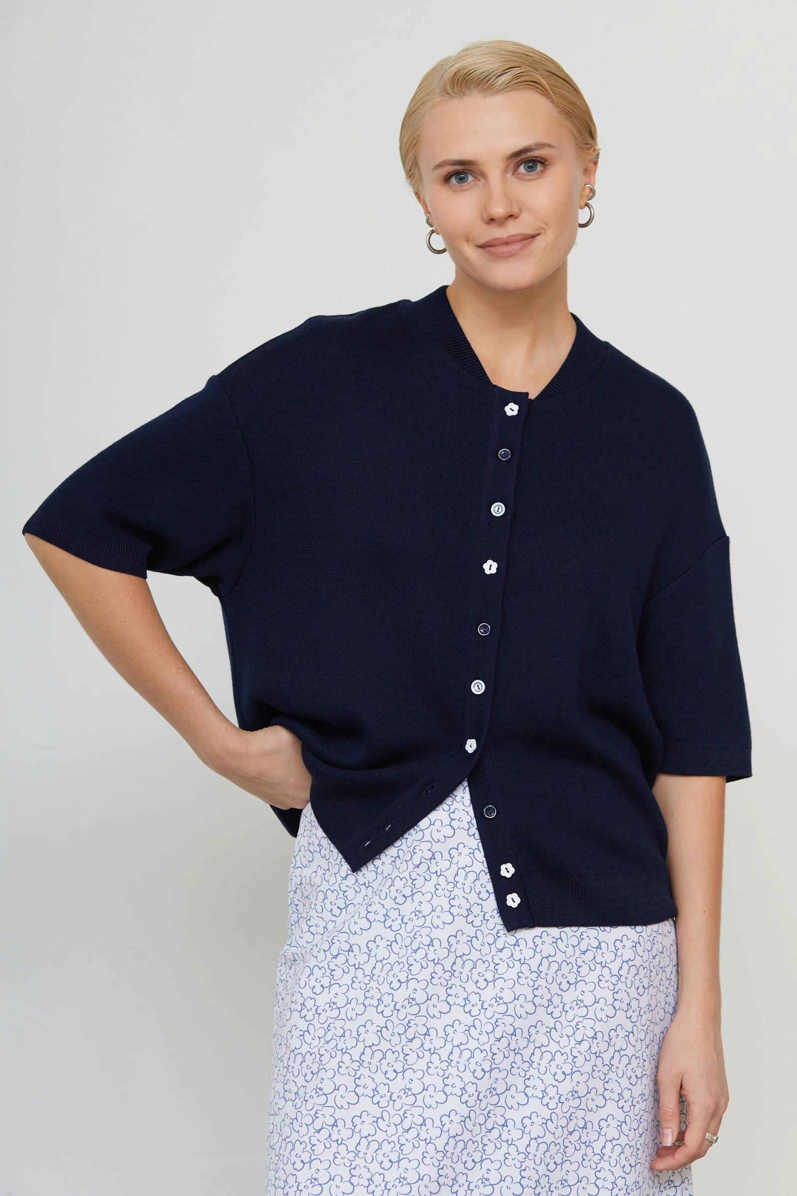 Кардиган-бомбер с разными пуговицами