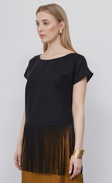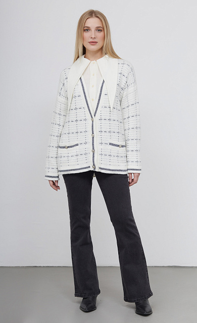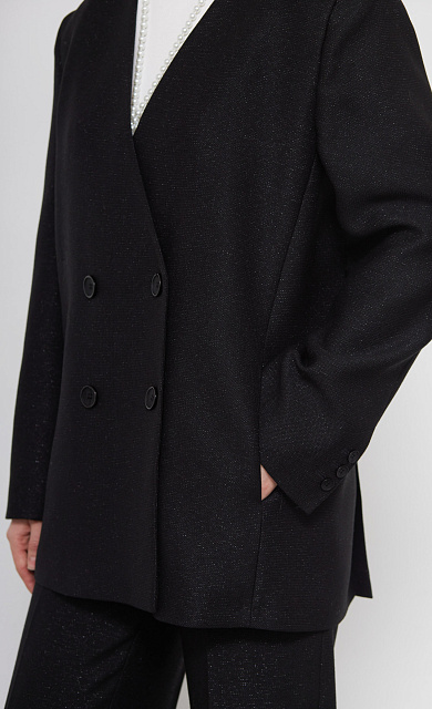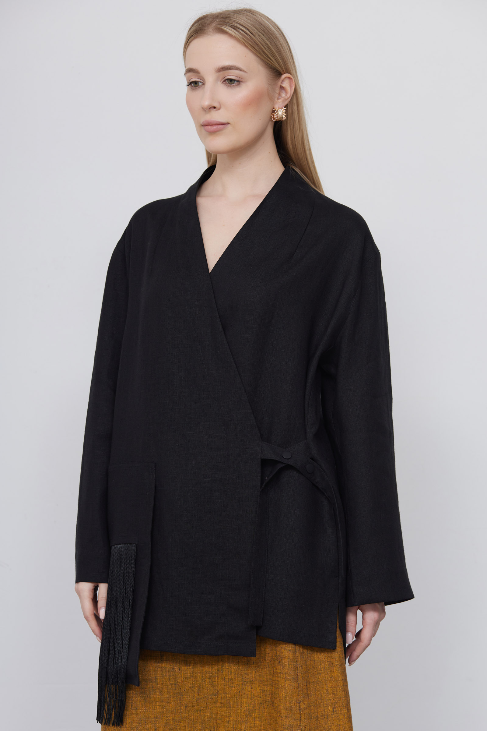 Льняной жакет-кимоно с декоративным накладным карманом.