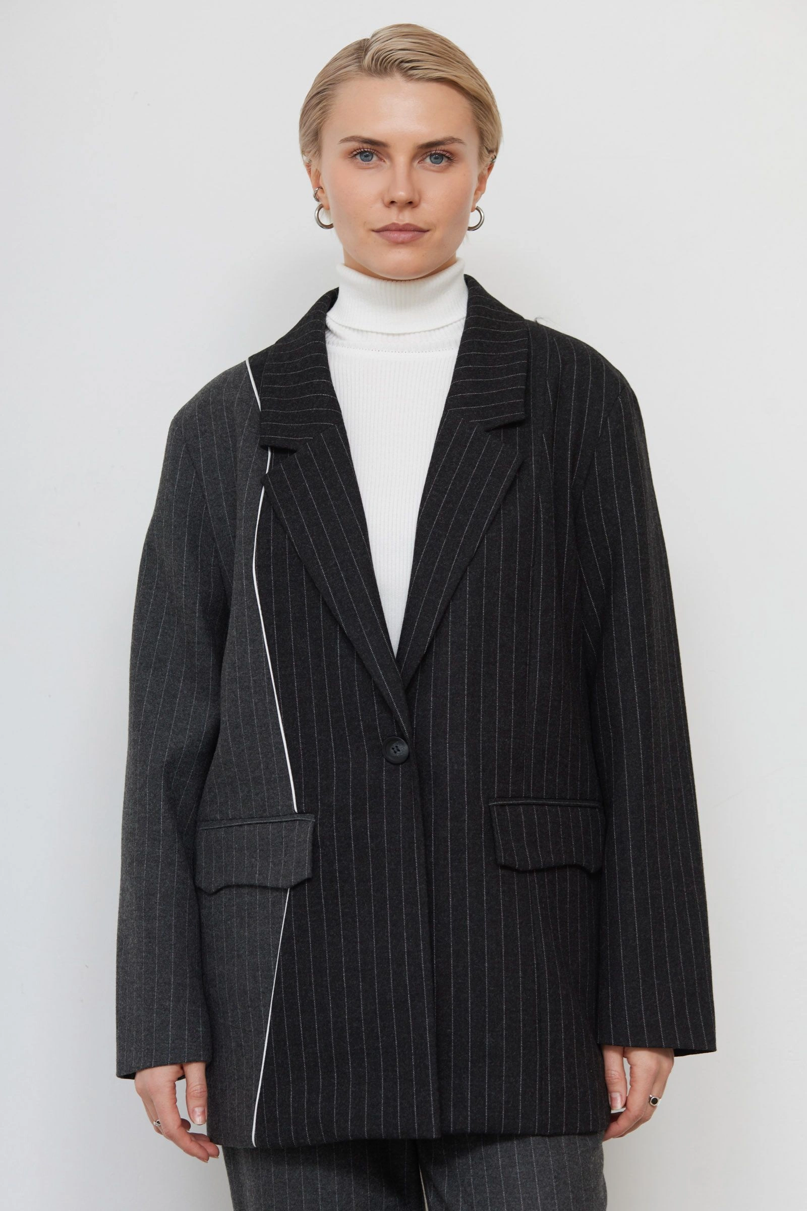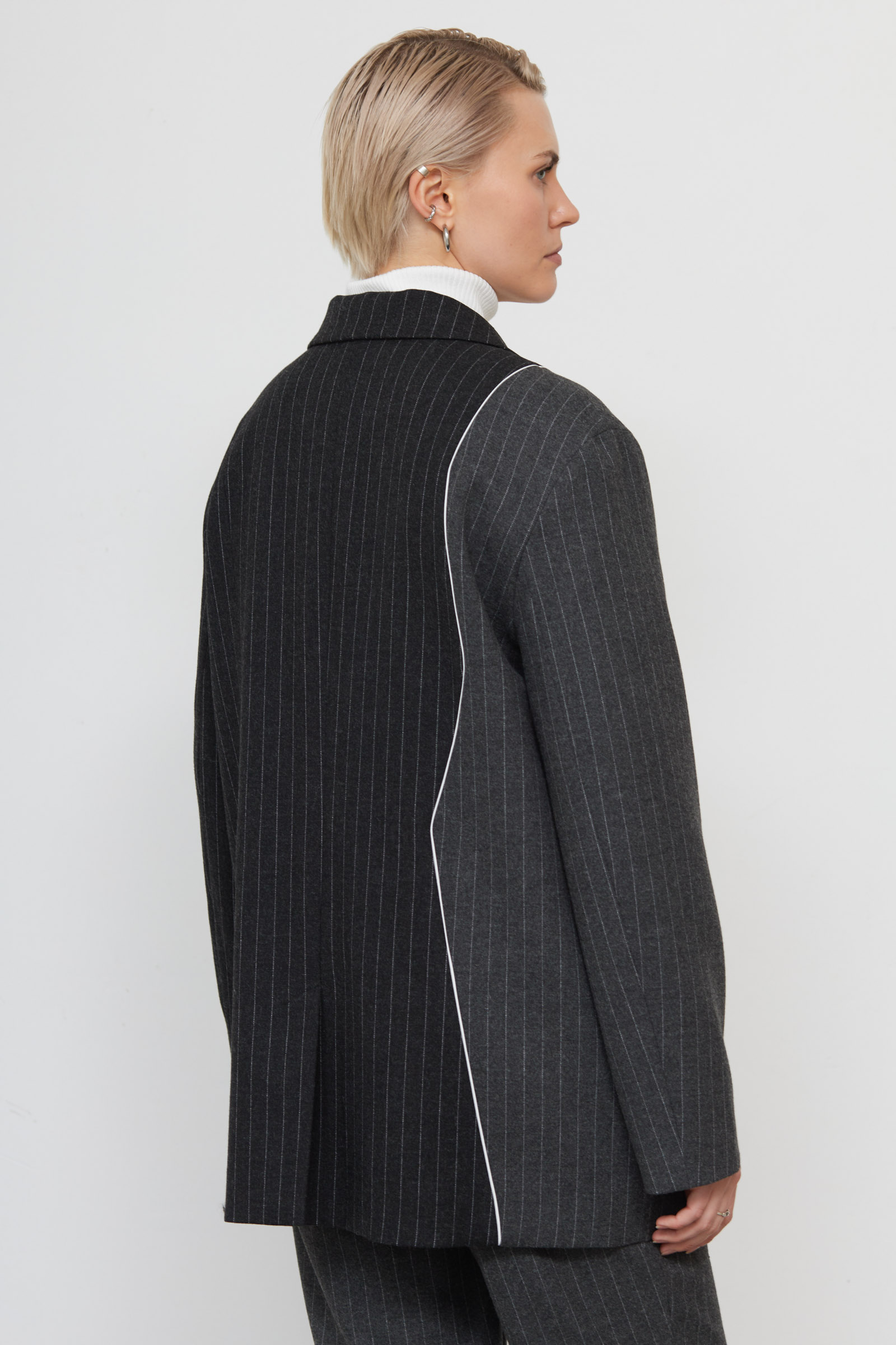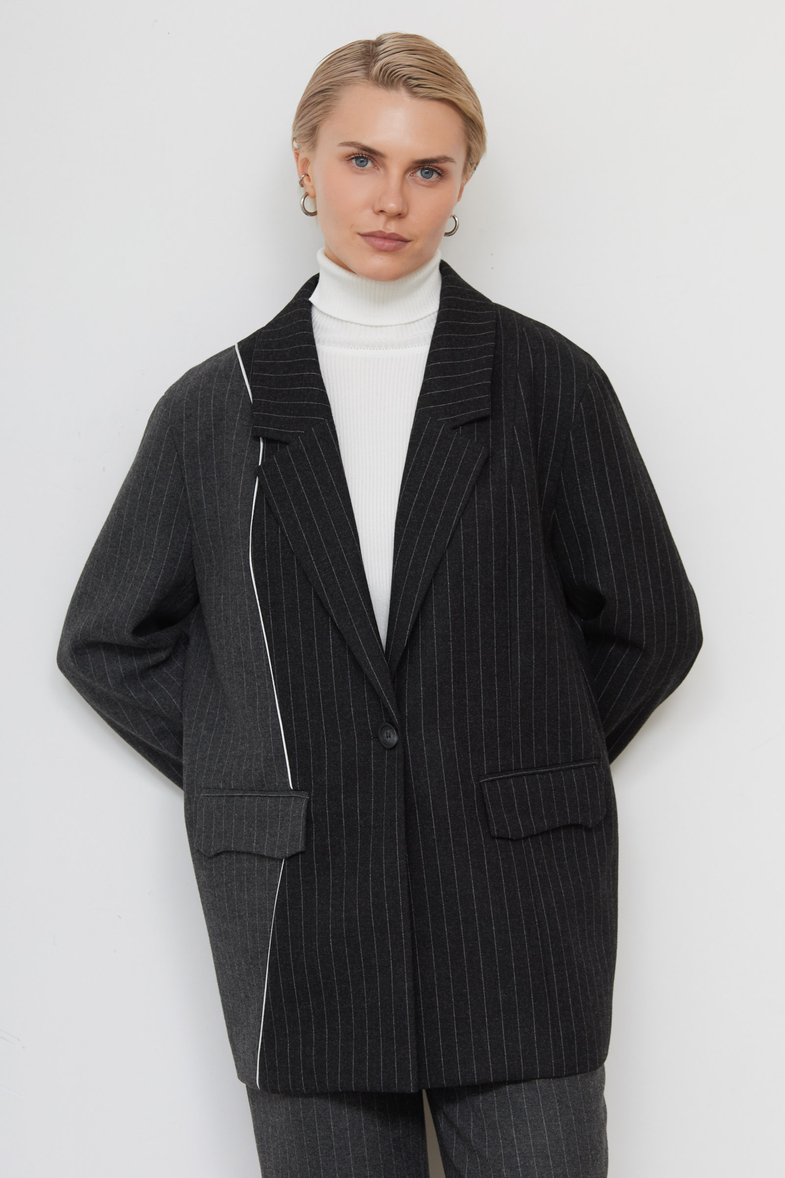 Жакет oversize в полоску с шерстью