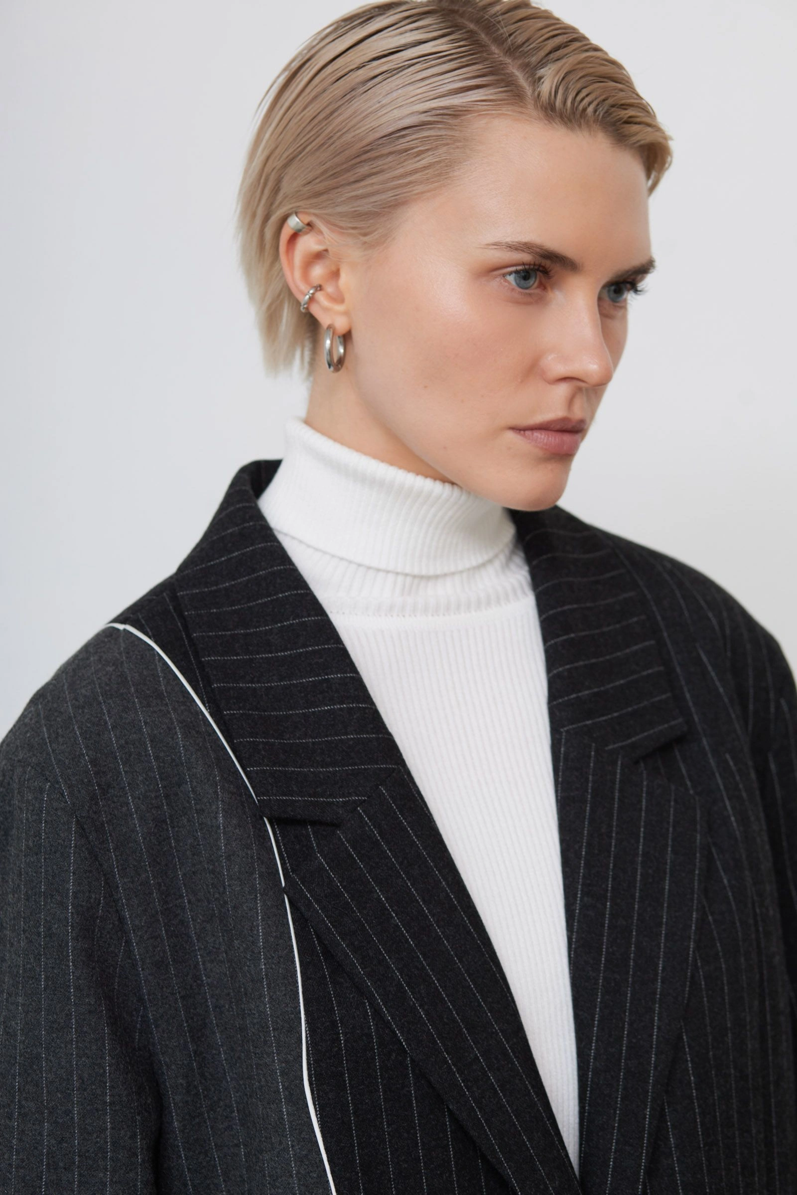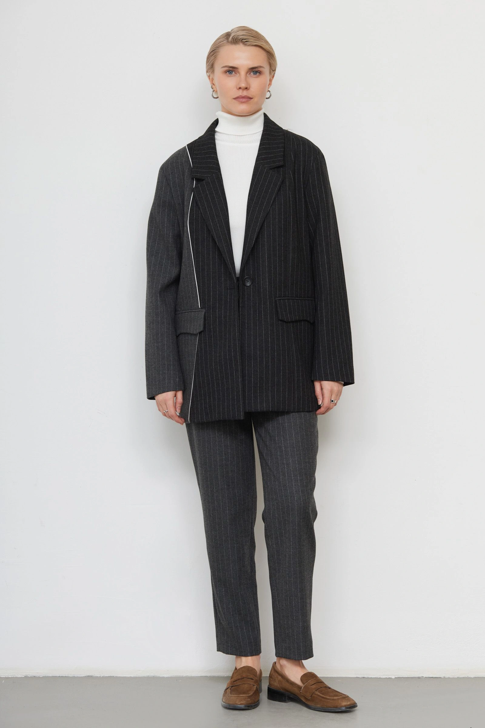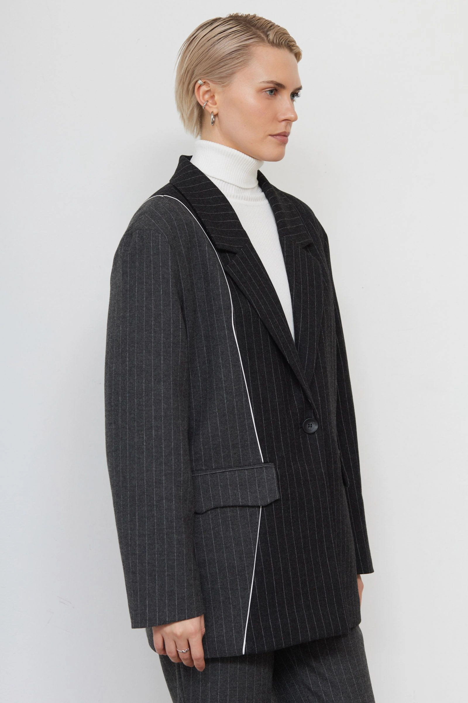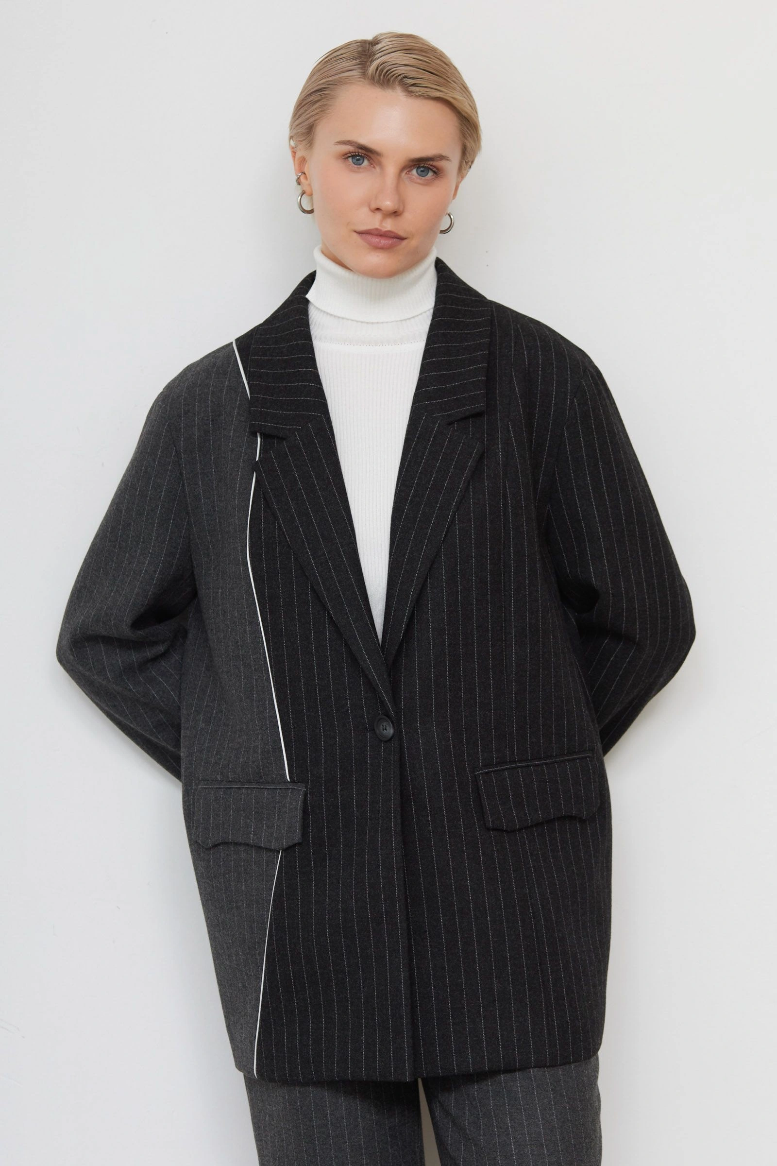 Жакет oversize в полоску с шерстью