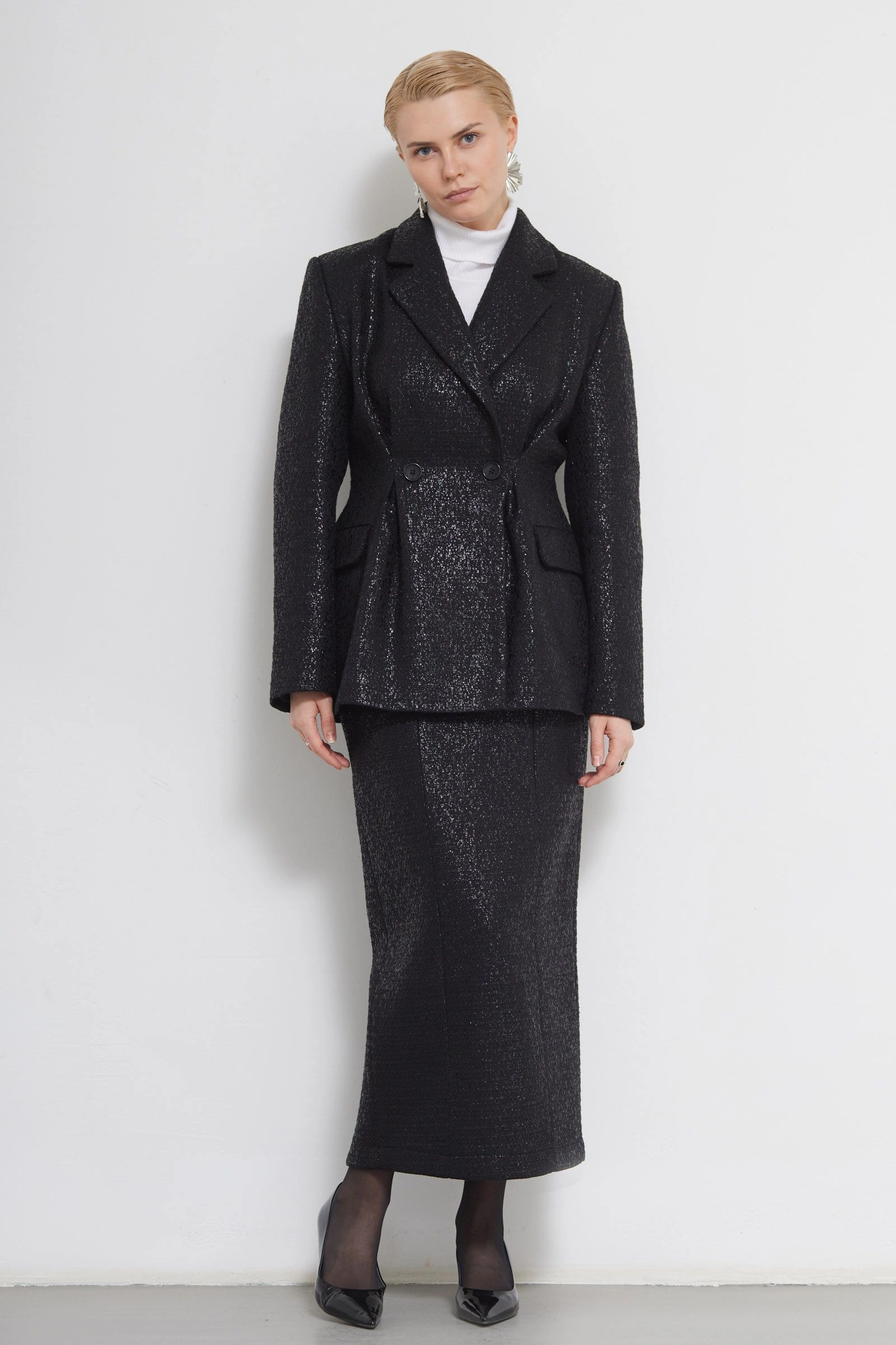Жакет с блеском и акцентом на талии