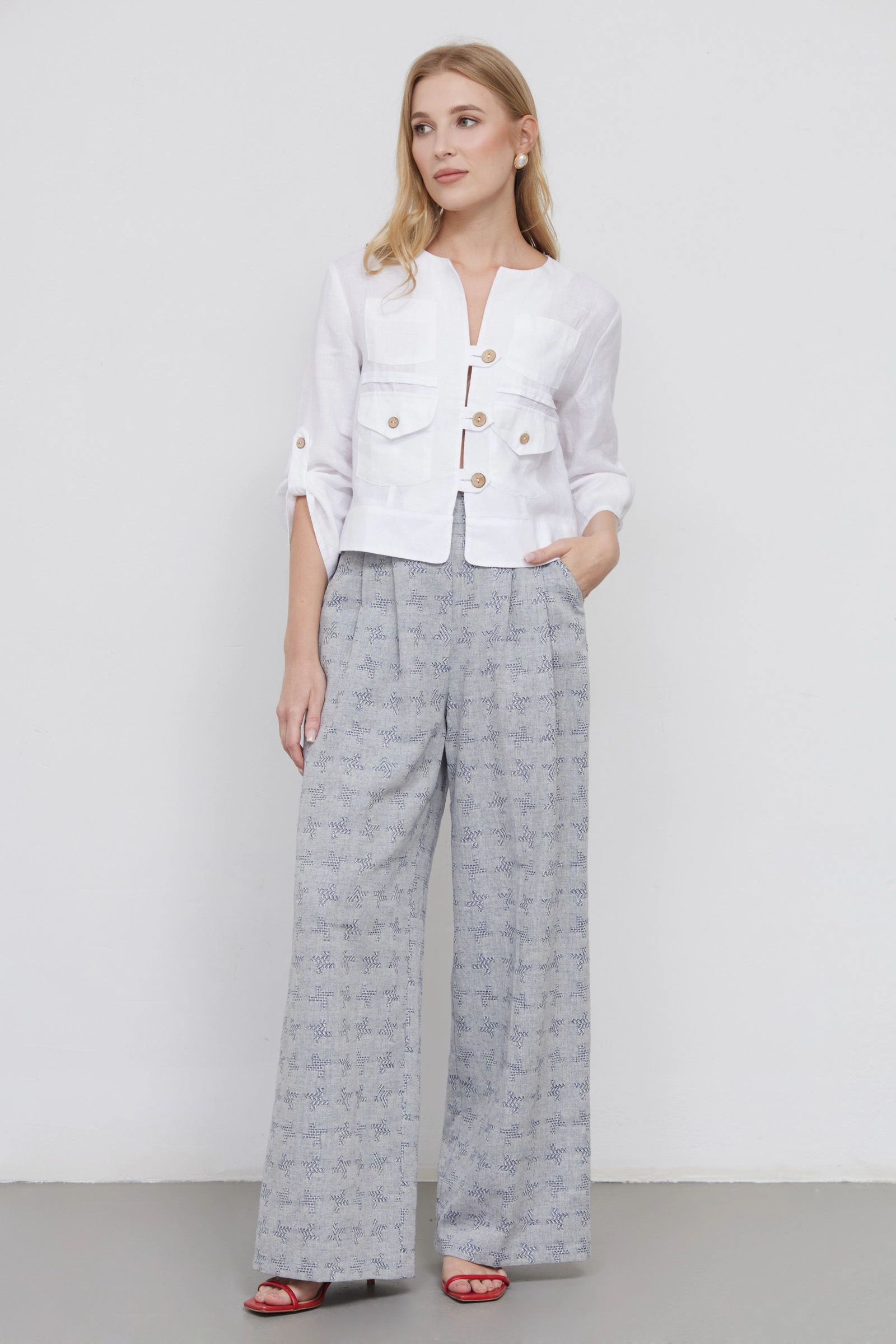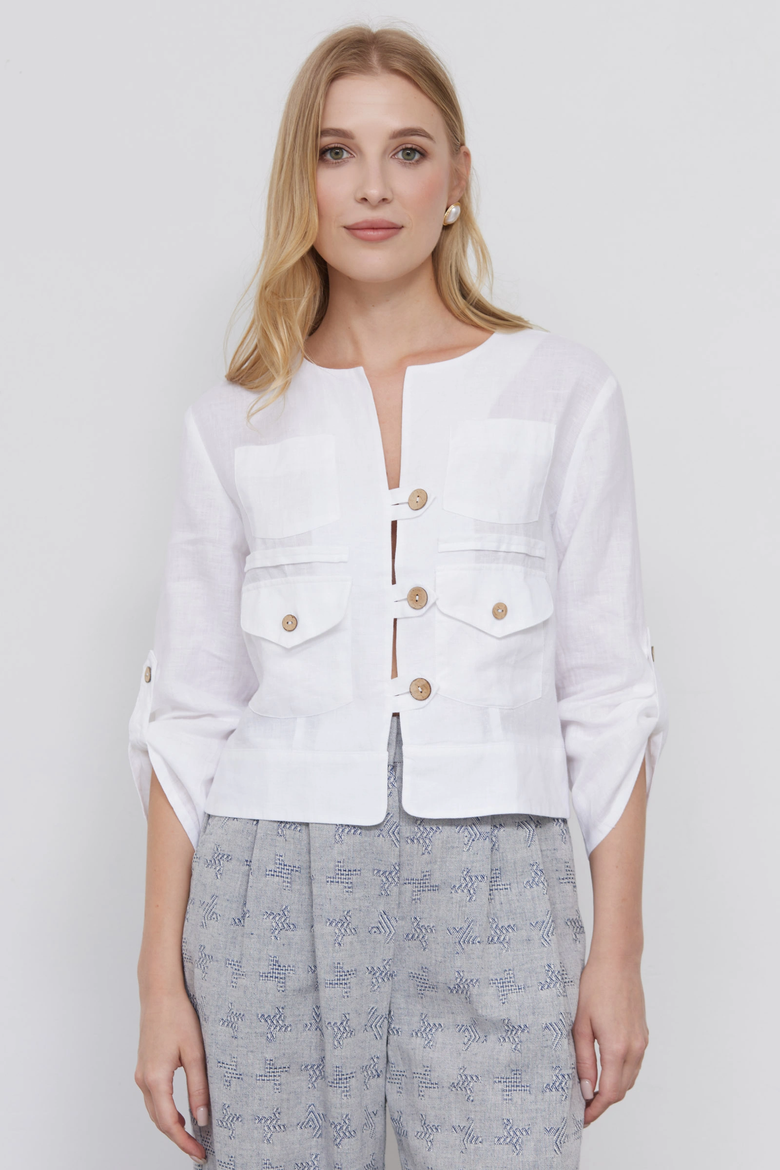 Жакет изо льна с карманами