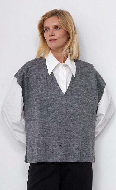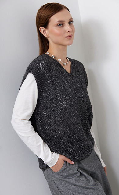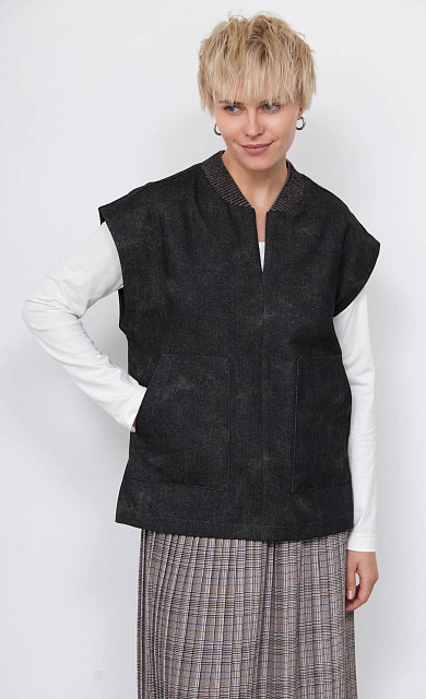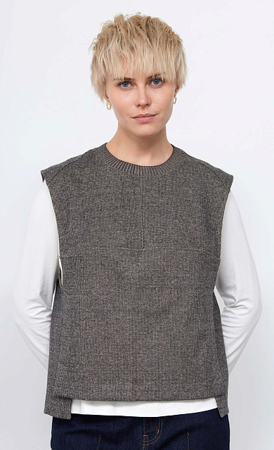 Укороченный жилет из мягкой фланелевой ткани в клетку с широкими проймами.