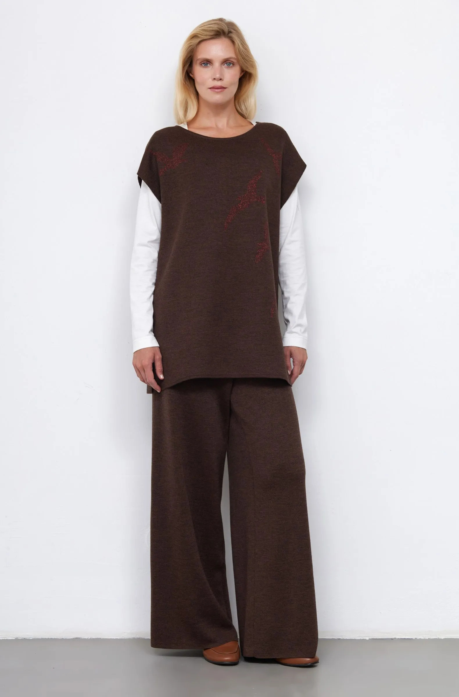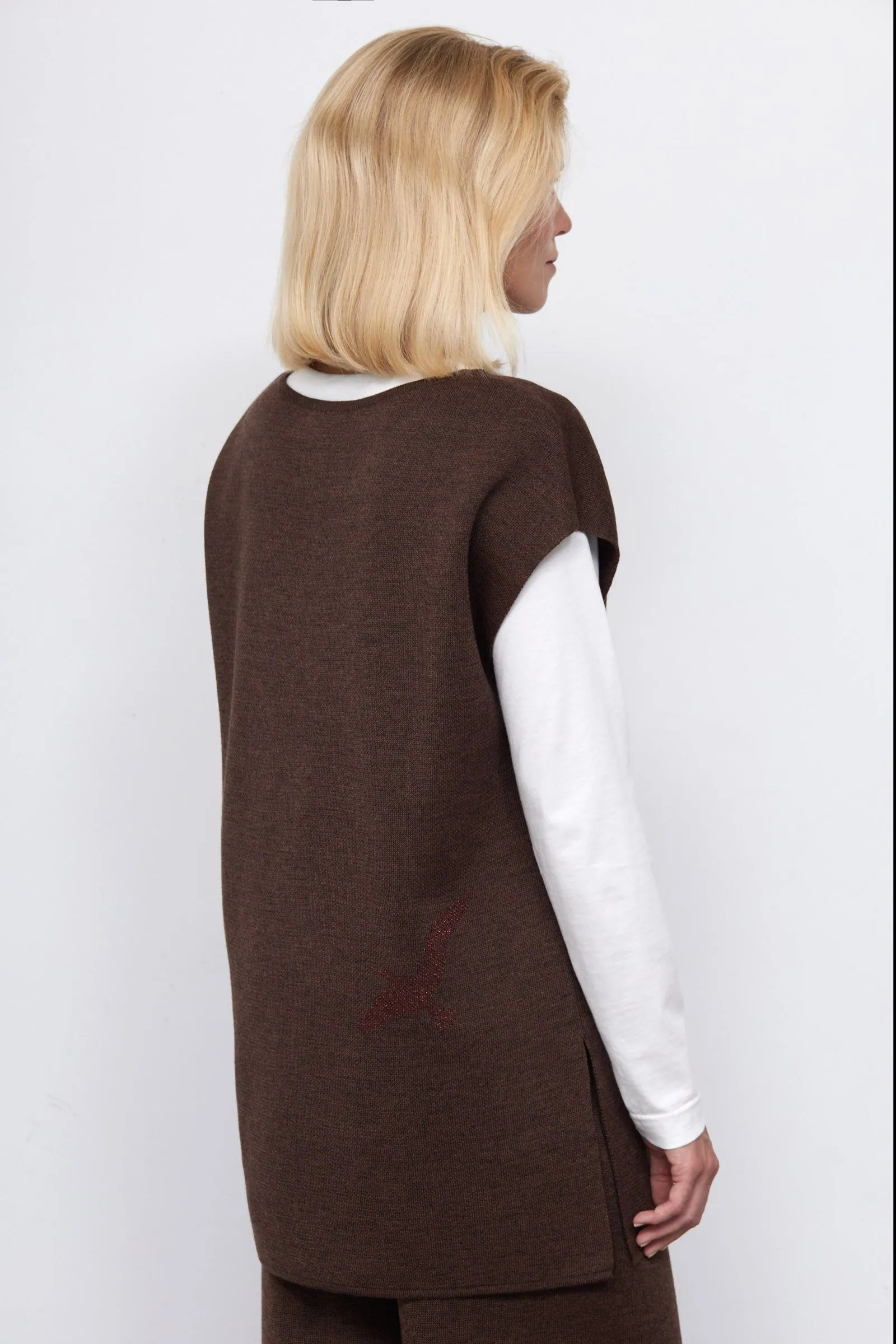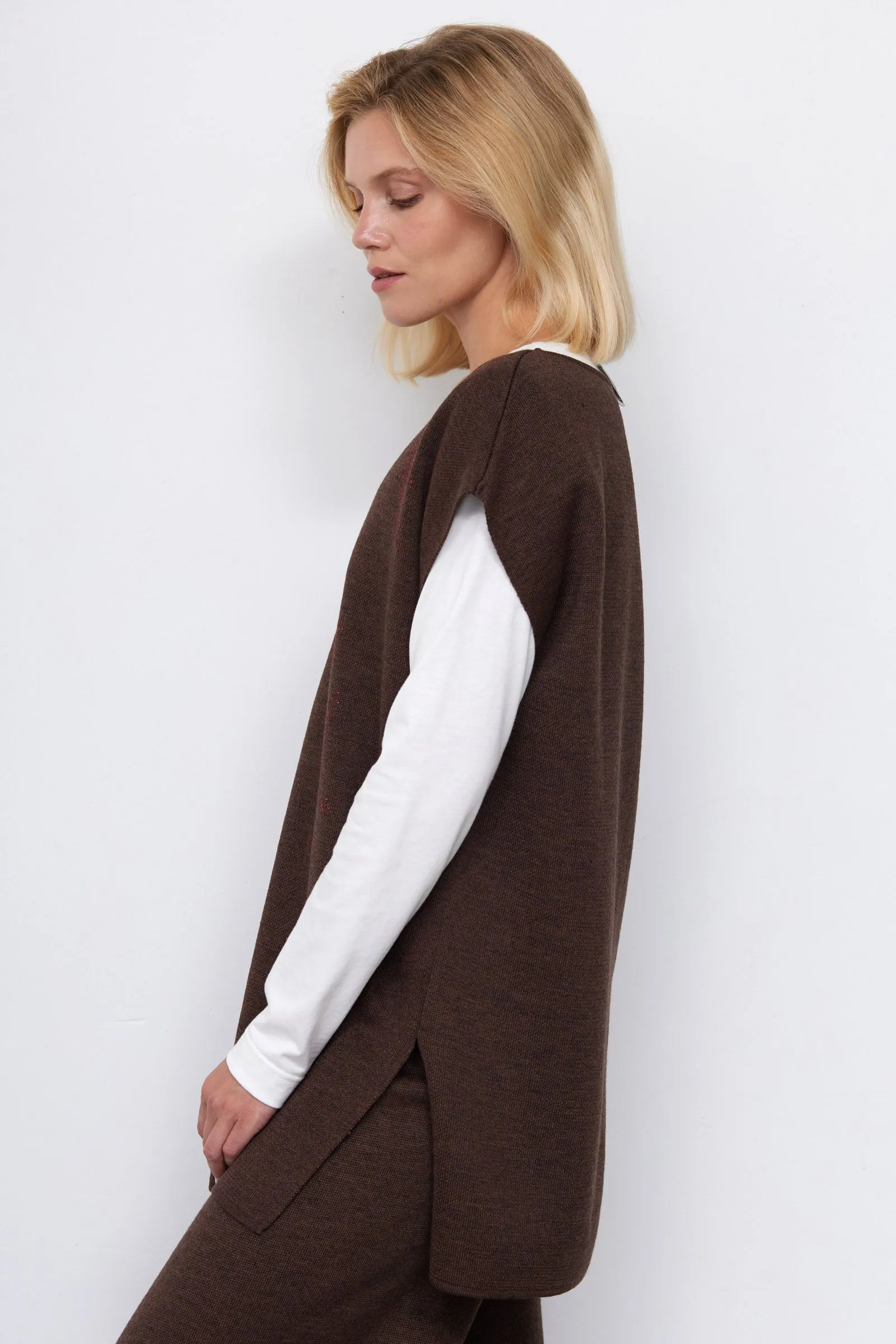 Полушерстяной вязаный жилет с рисунком из люрекса.