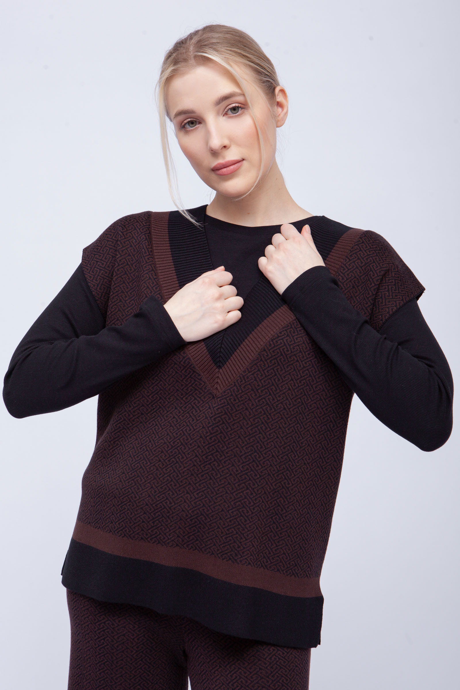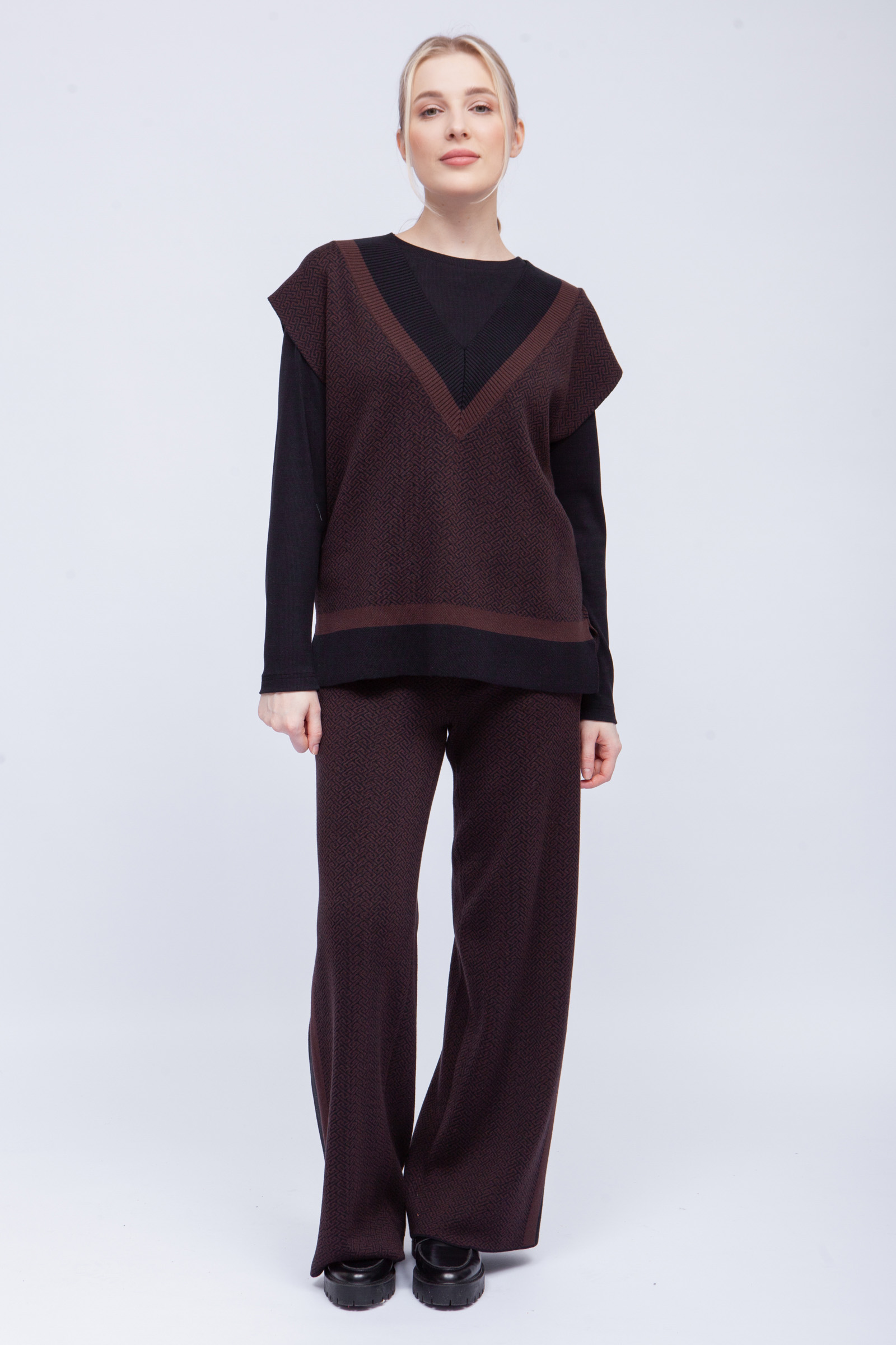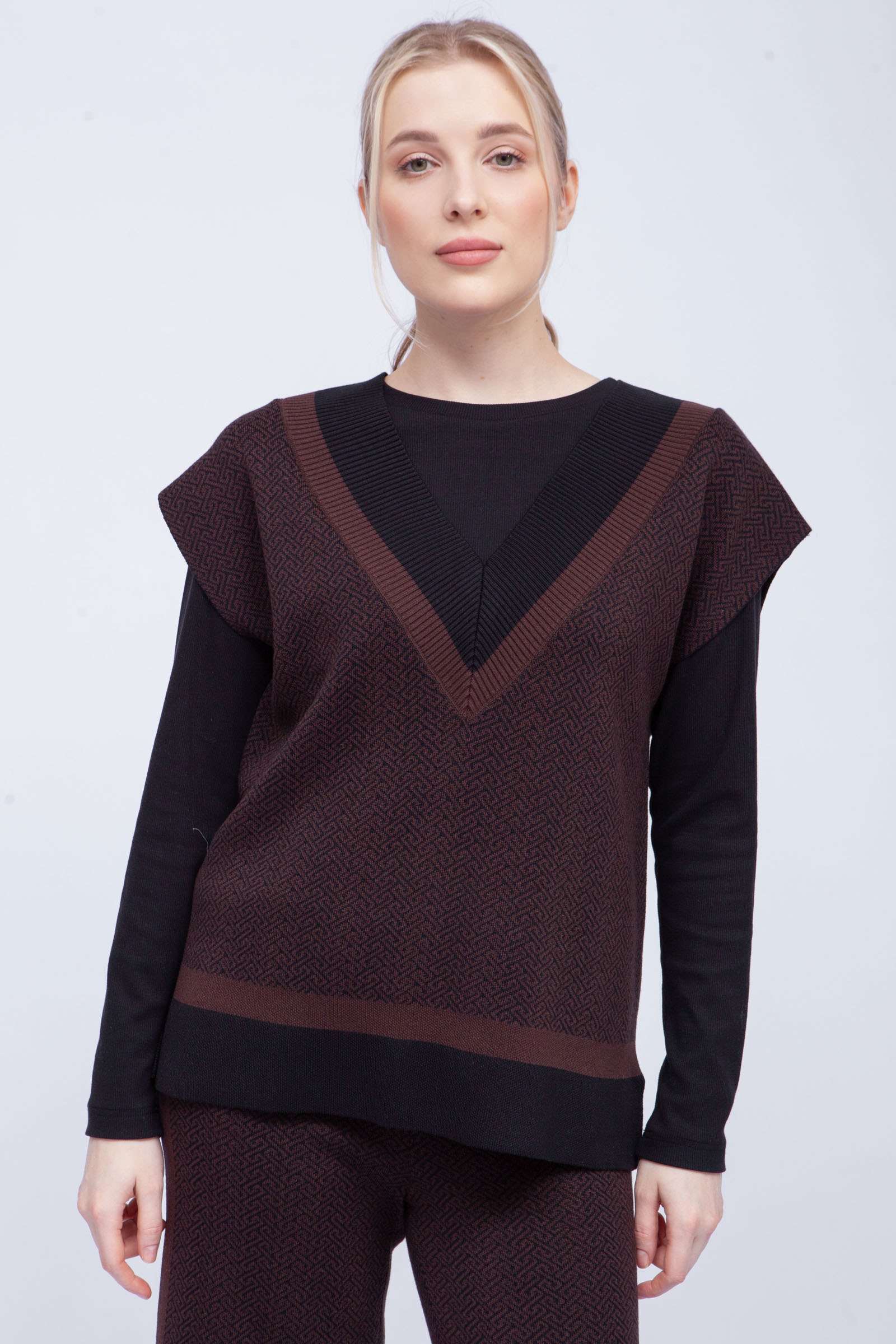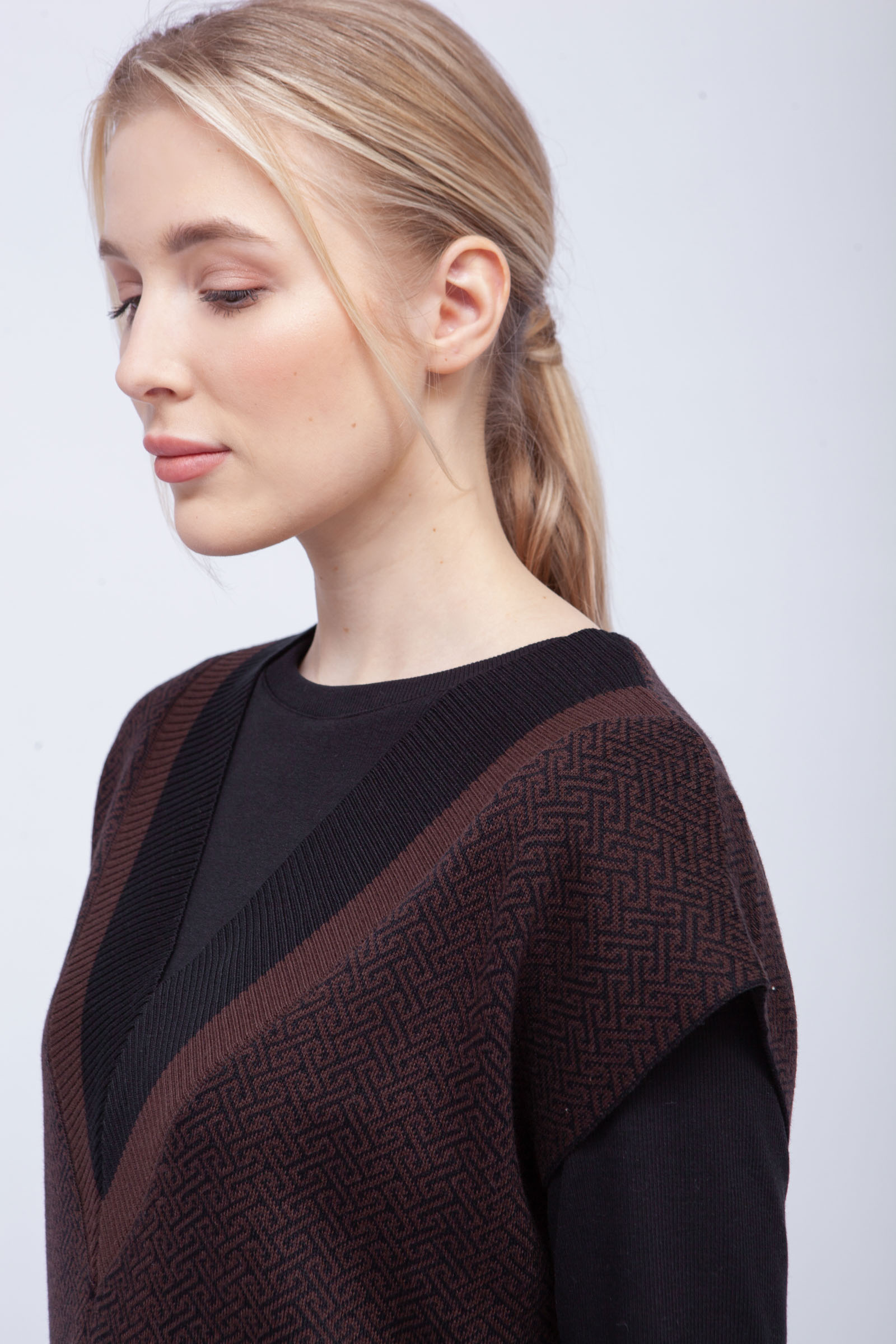 Вязаный жилет oversize с графическим рисунком и глубоким V-вырезом.