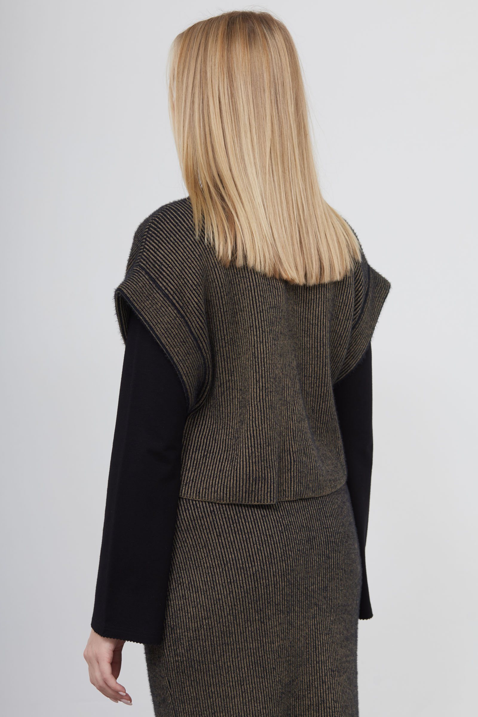 Укороченный жилет из вязаного трикотажа в рубчик.