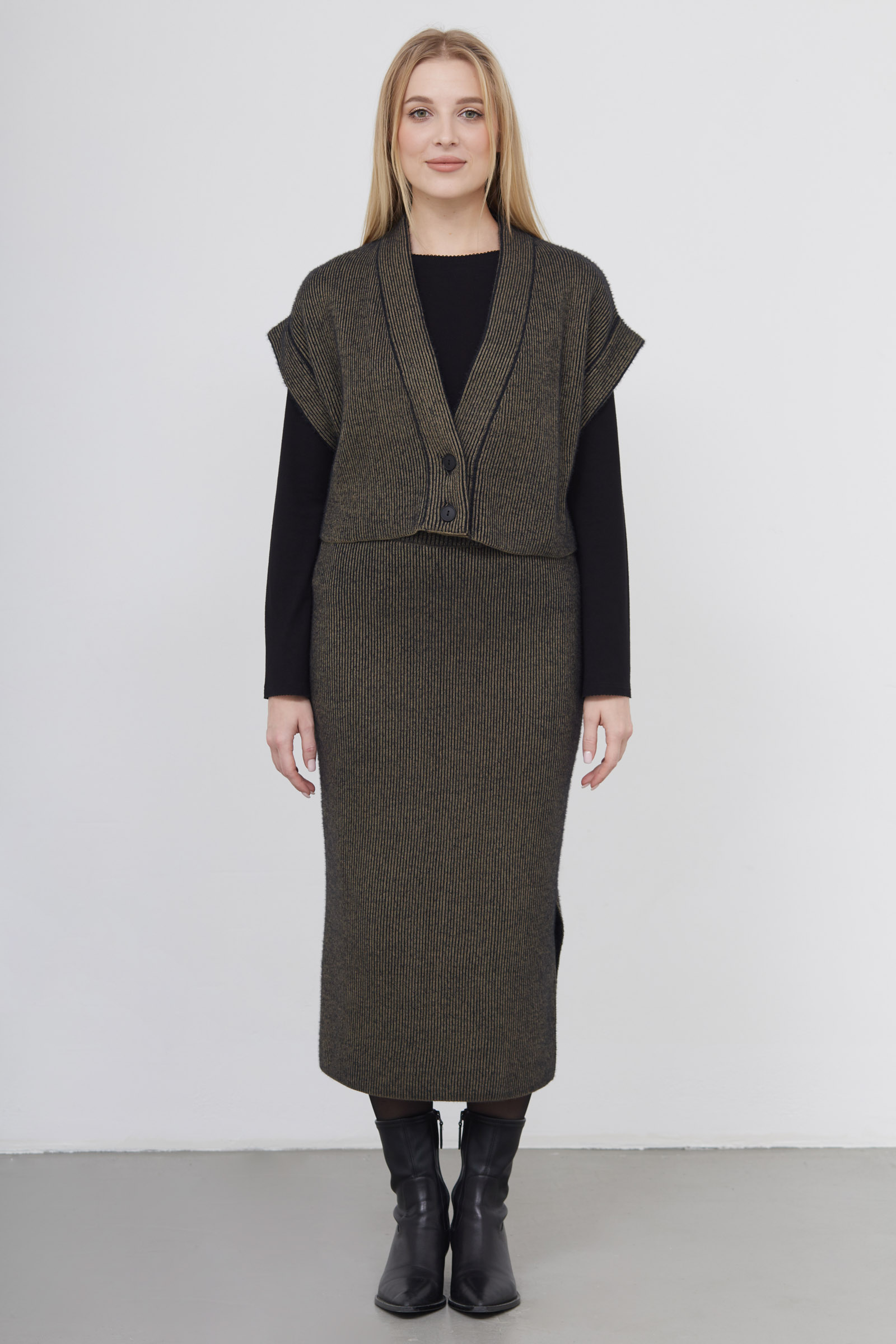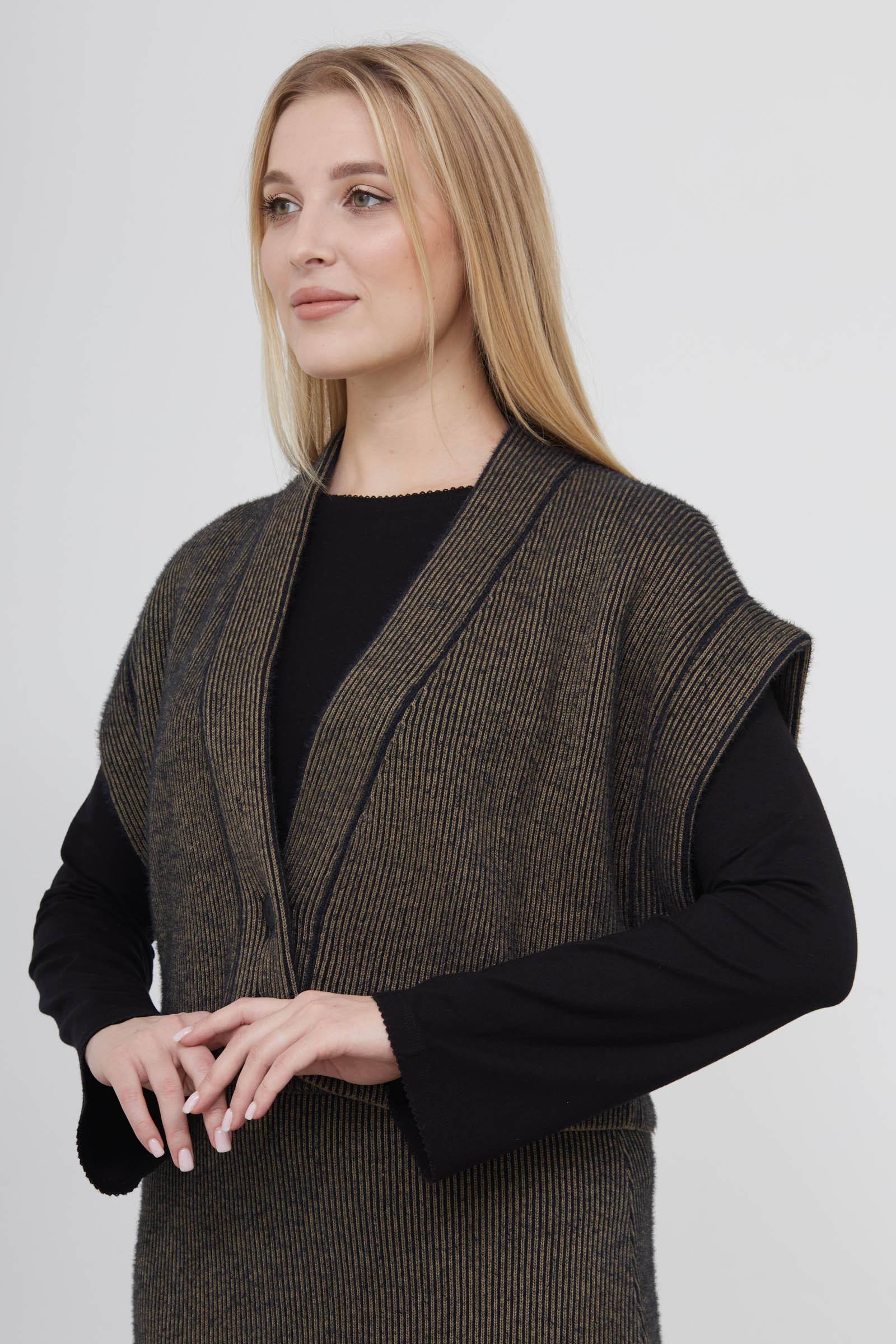 Укороченный жилет из вязаного трикотажа в рубчик.