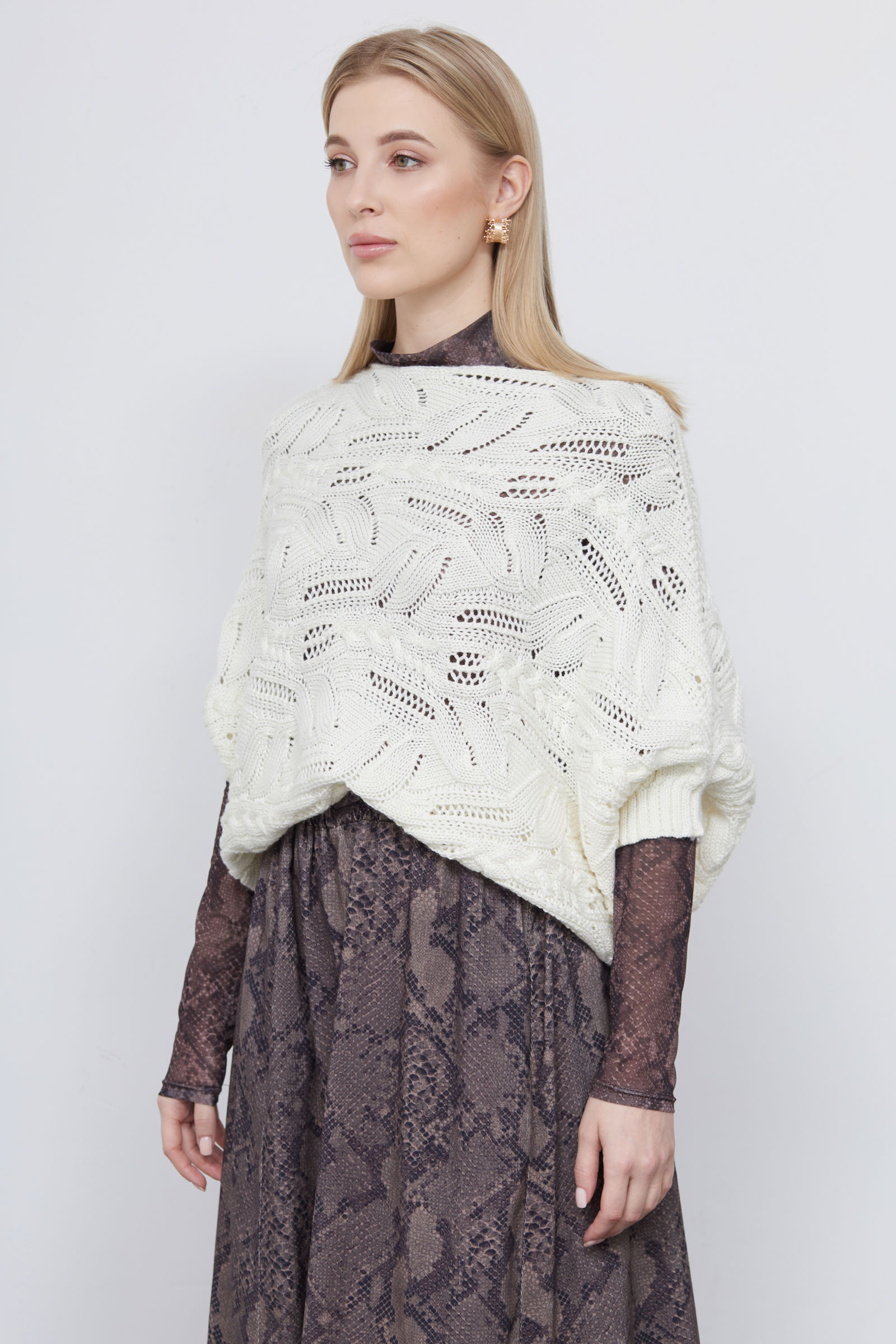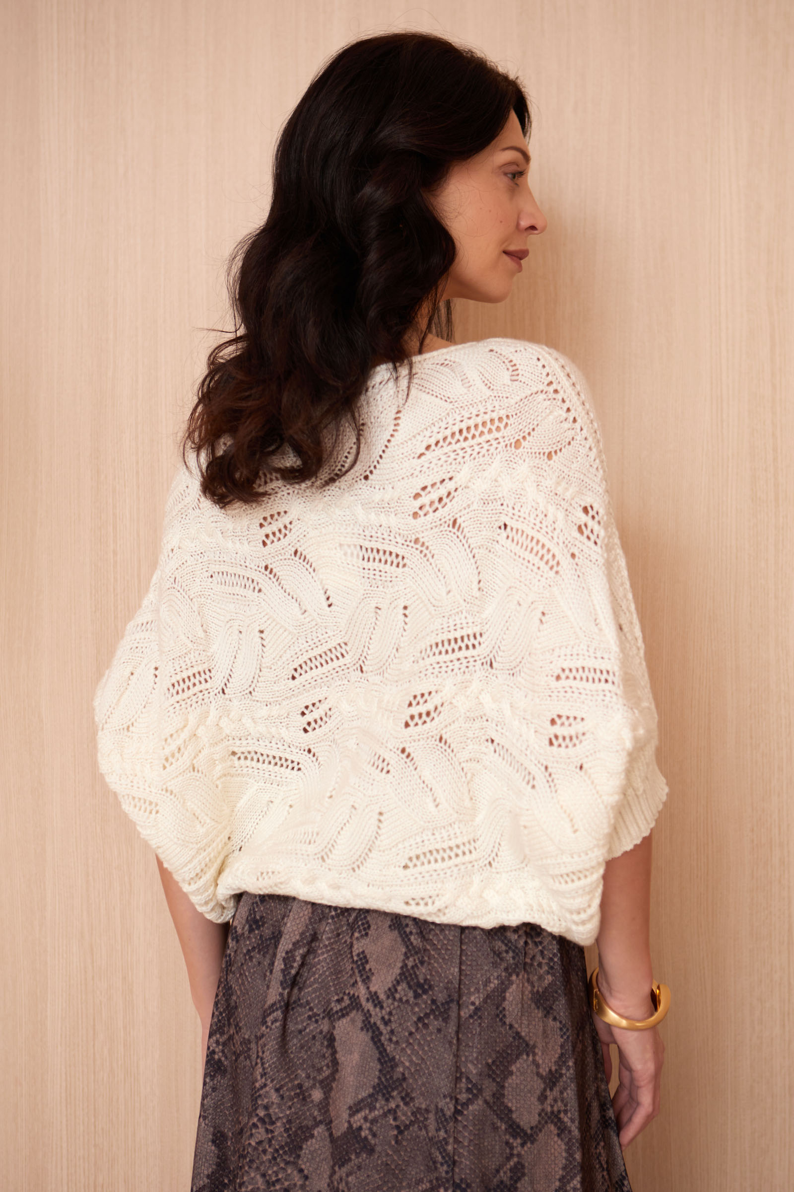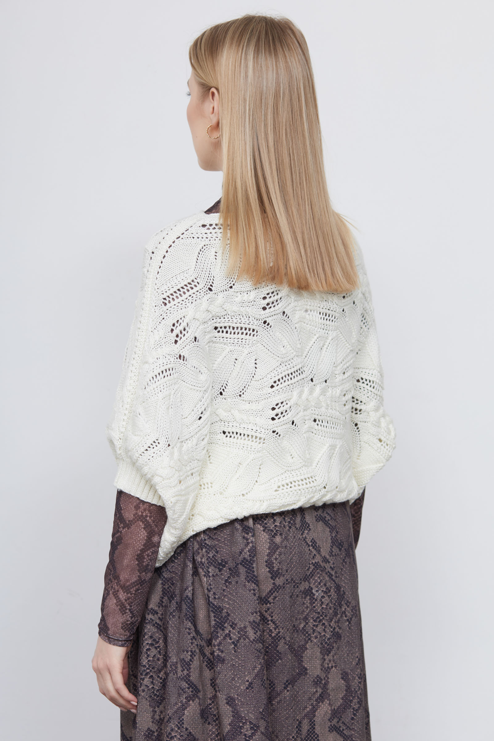 Жилет кокон oversize ажурной вязки из смесовой шерсти.