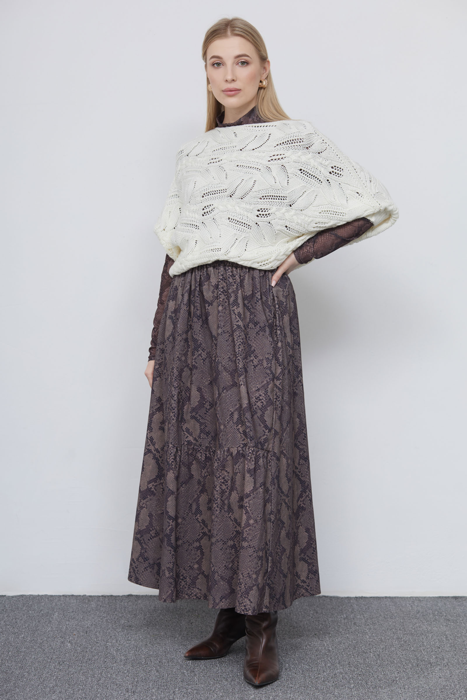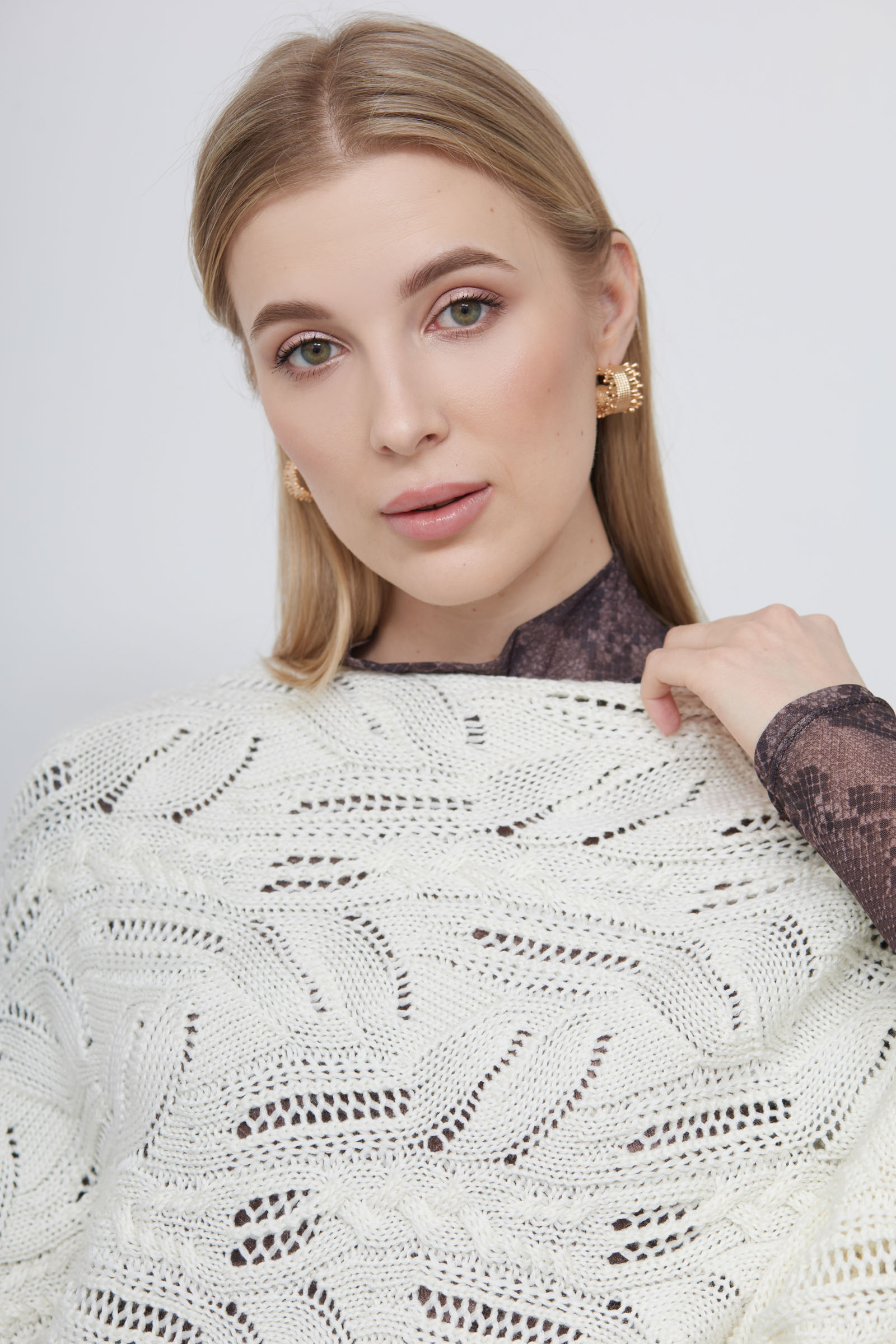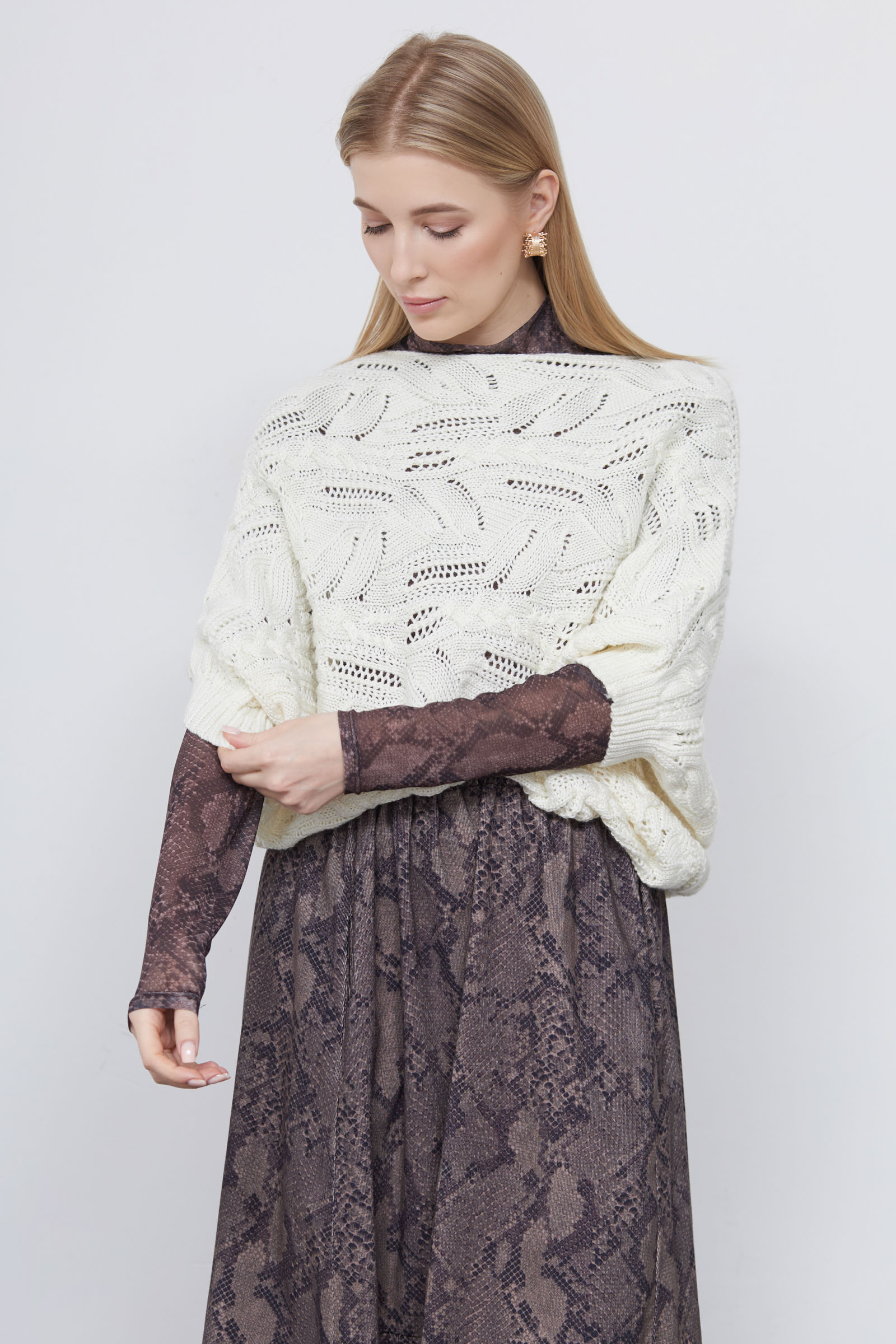 Жилет кокон oversize ажурной вязки из смесовой шерсти.