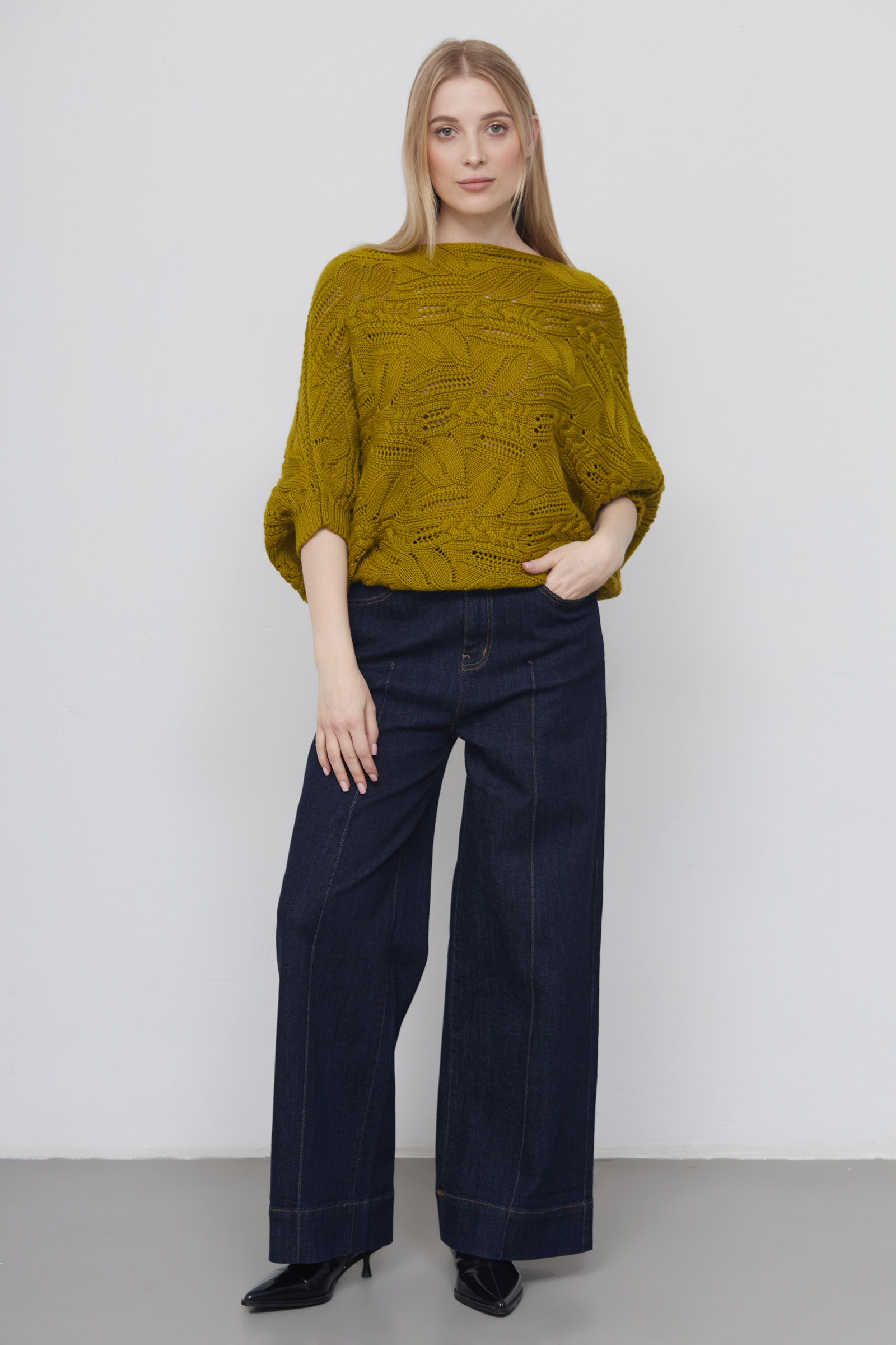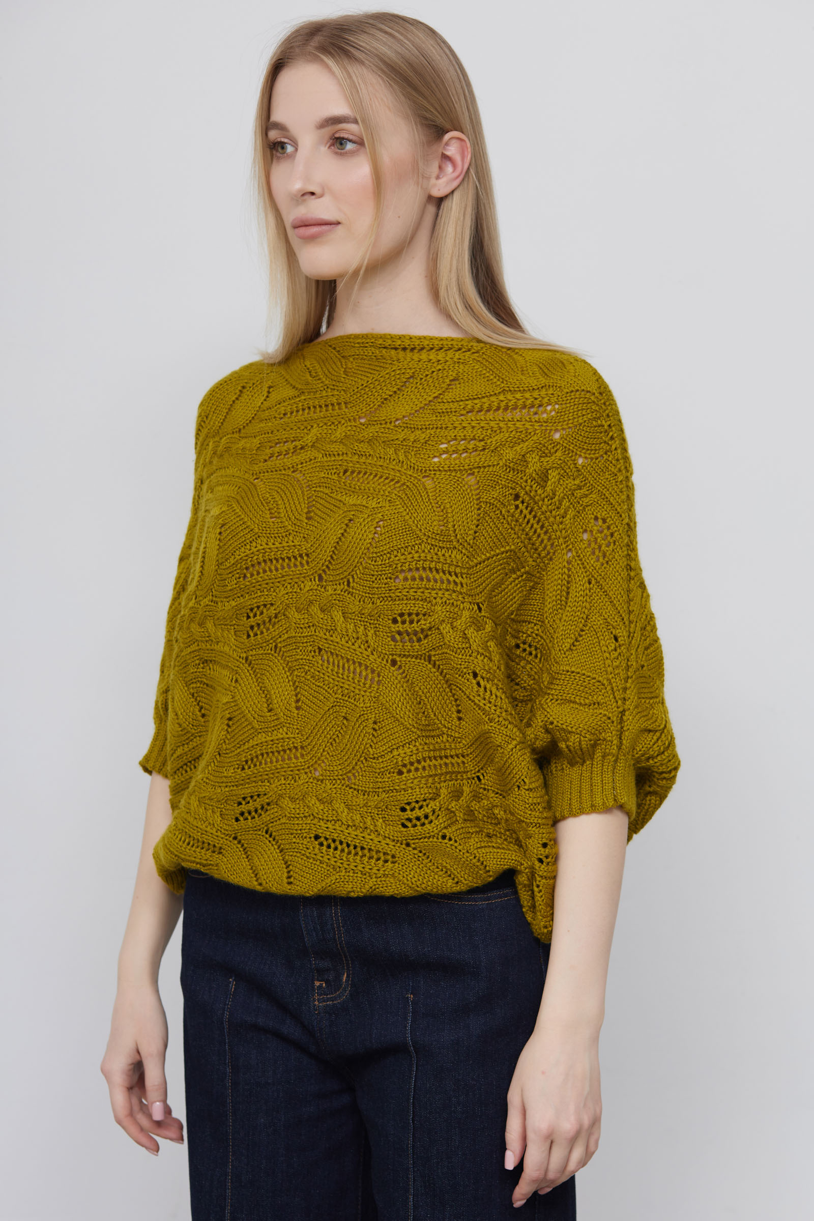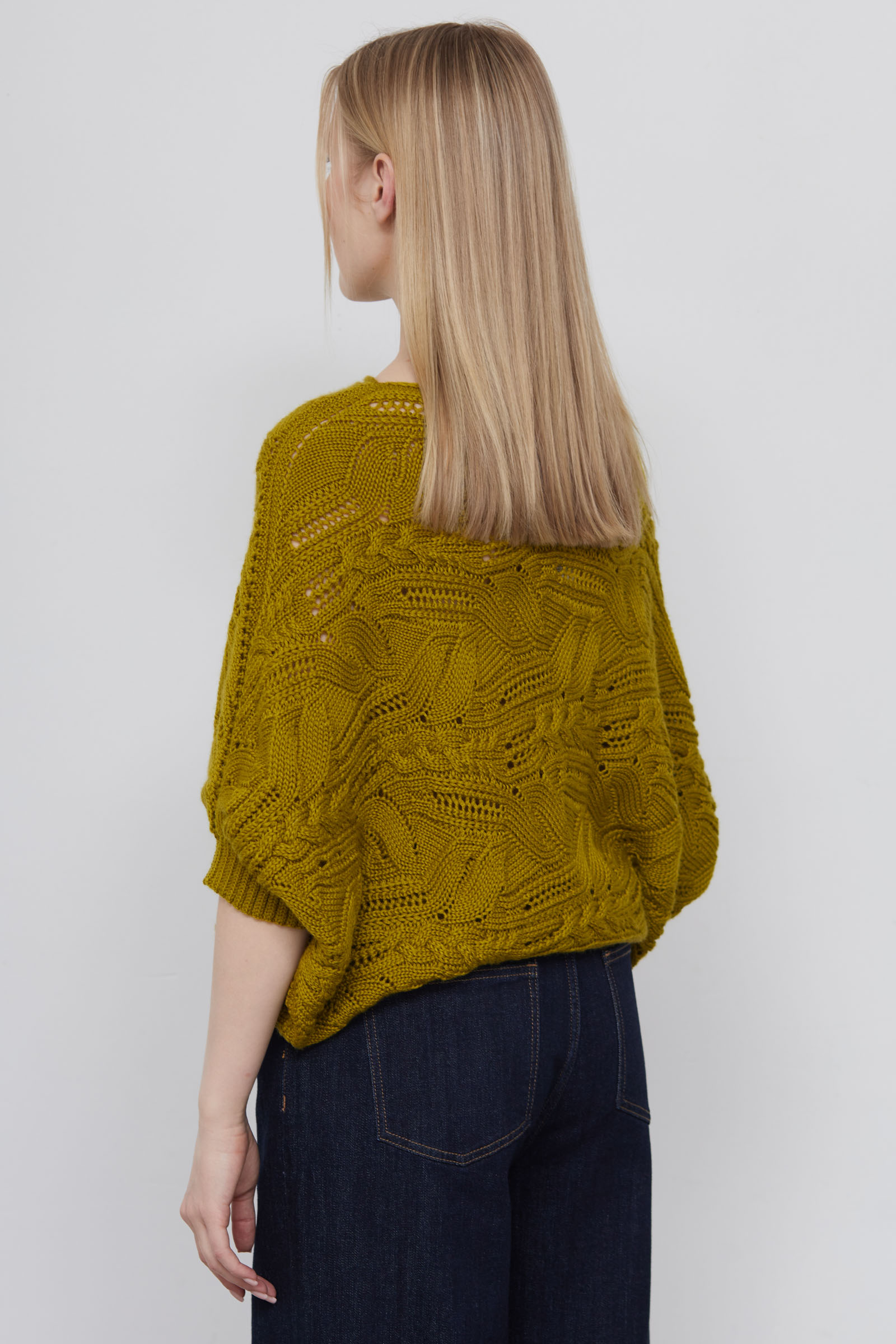 Жилет кокон oversize ажурной вязки из смесовой шерсти.
