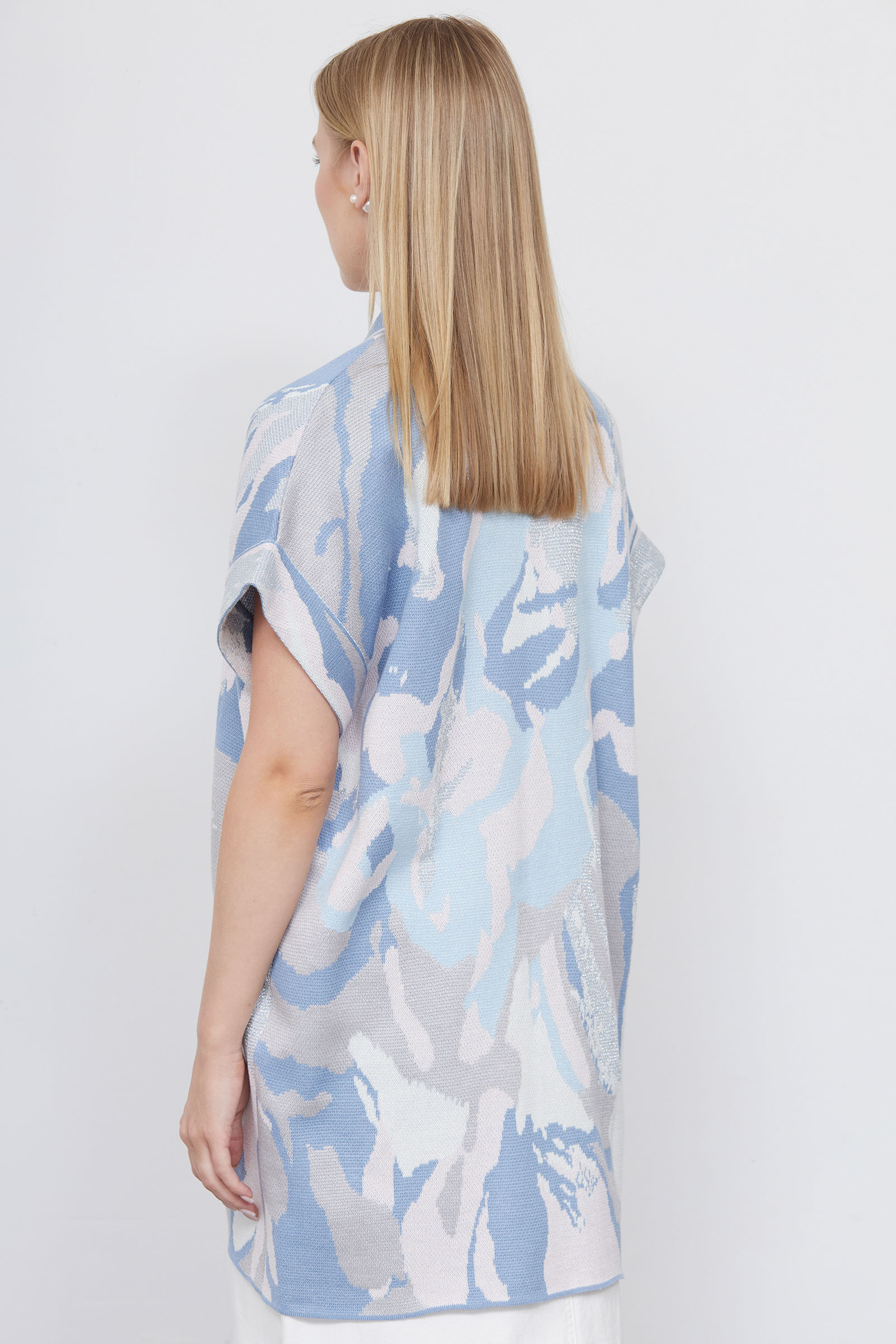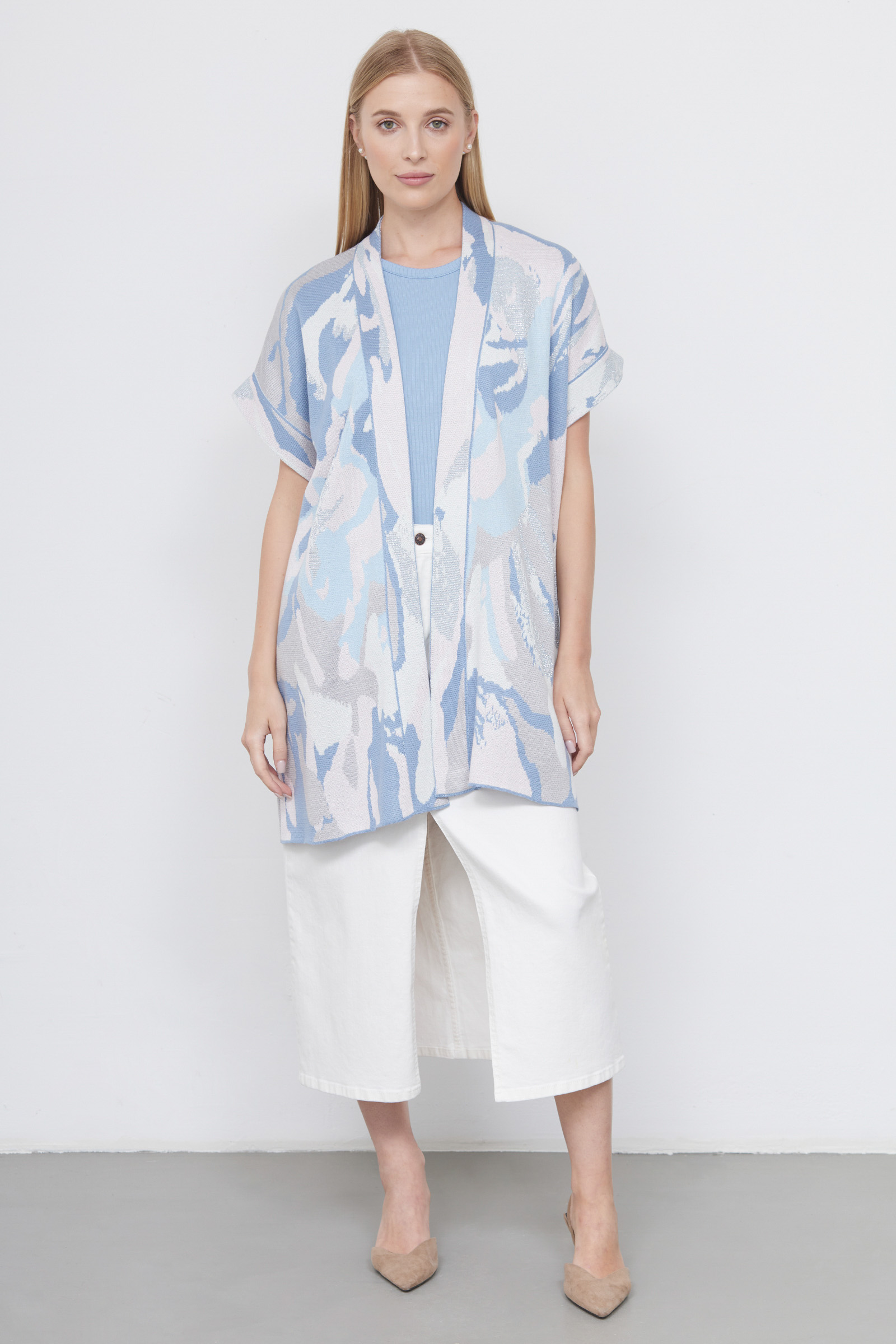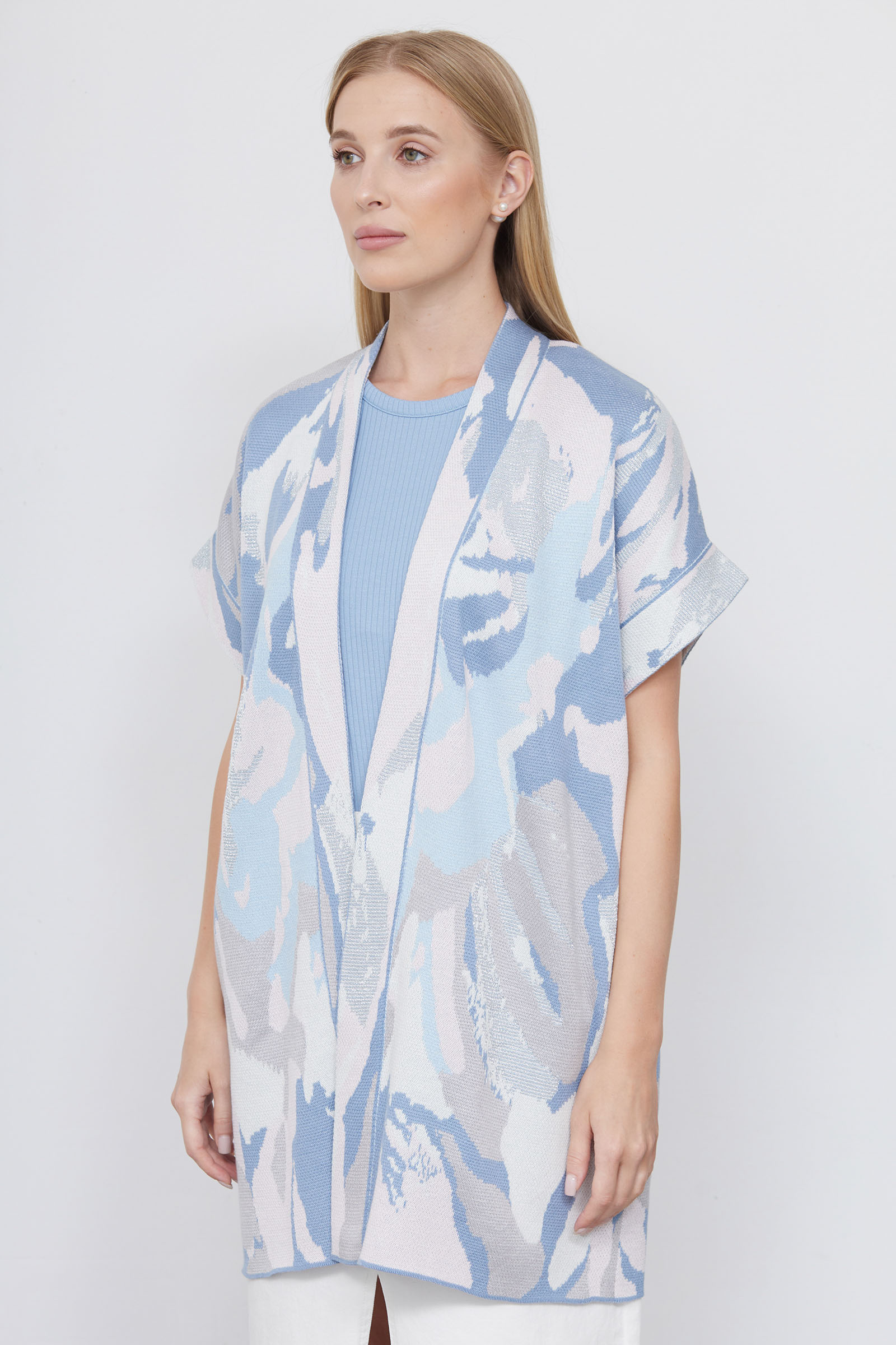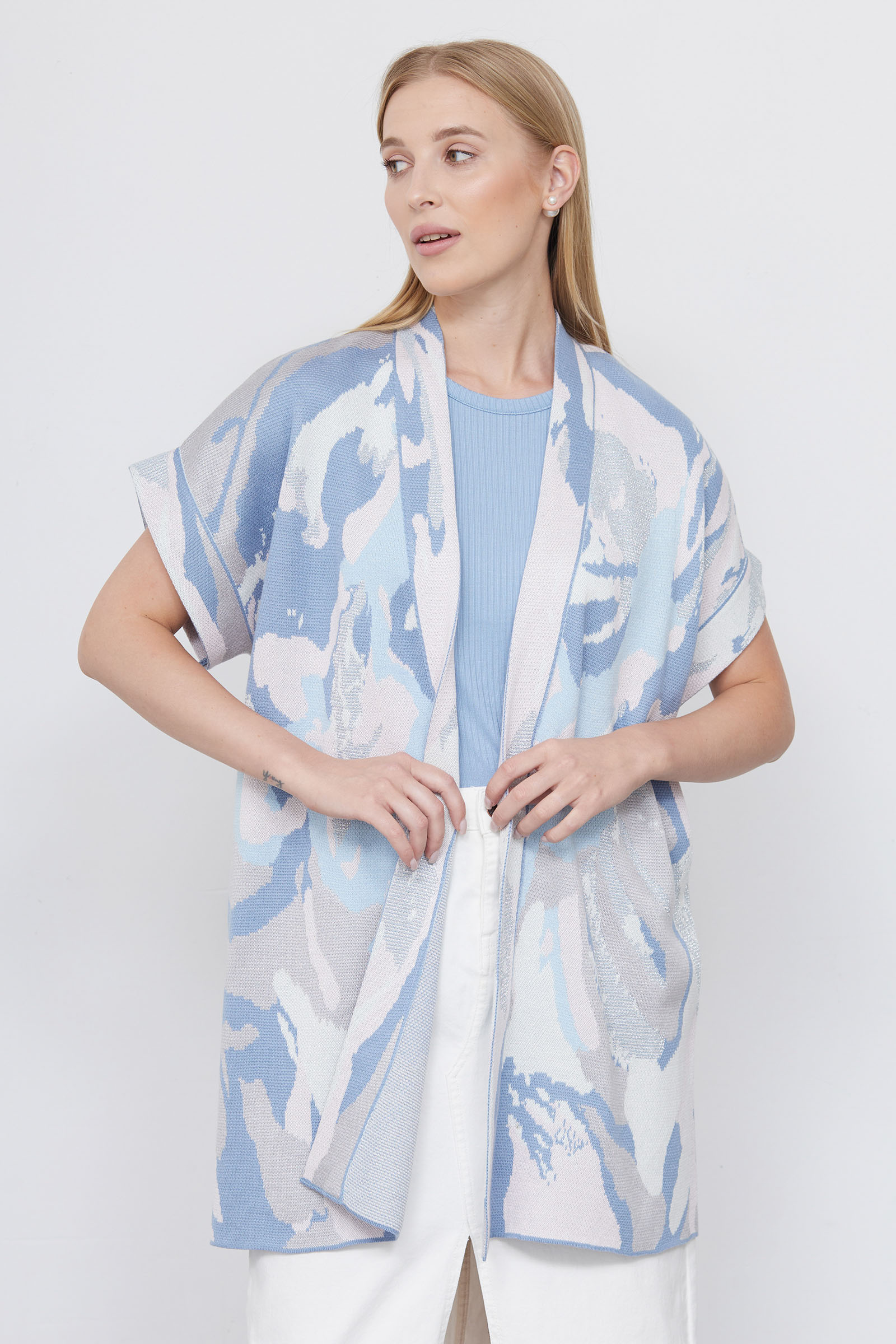 Удлиненный жилет oversize жаккардовой вязки с абстрактным рисунком.