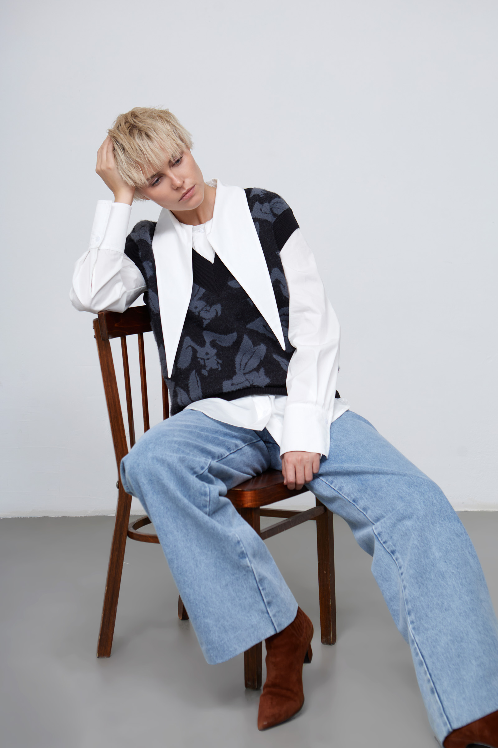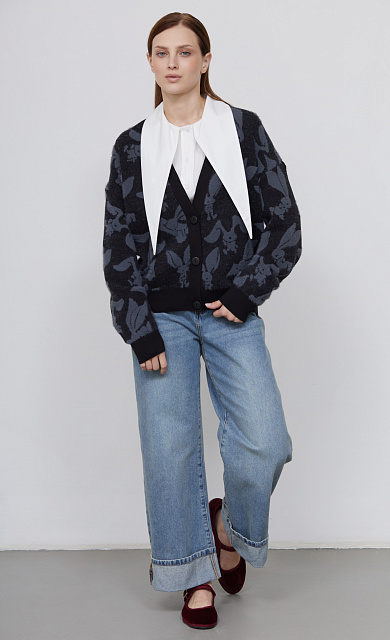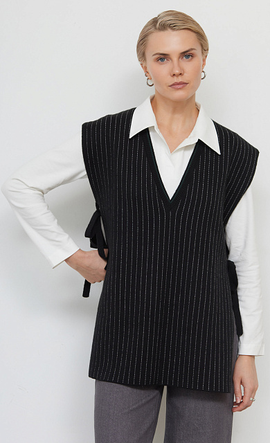 Жилет oversize из мягкого пушистого трикотажа с фантазийным принтом.