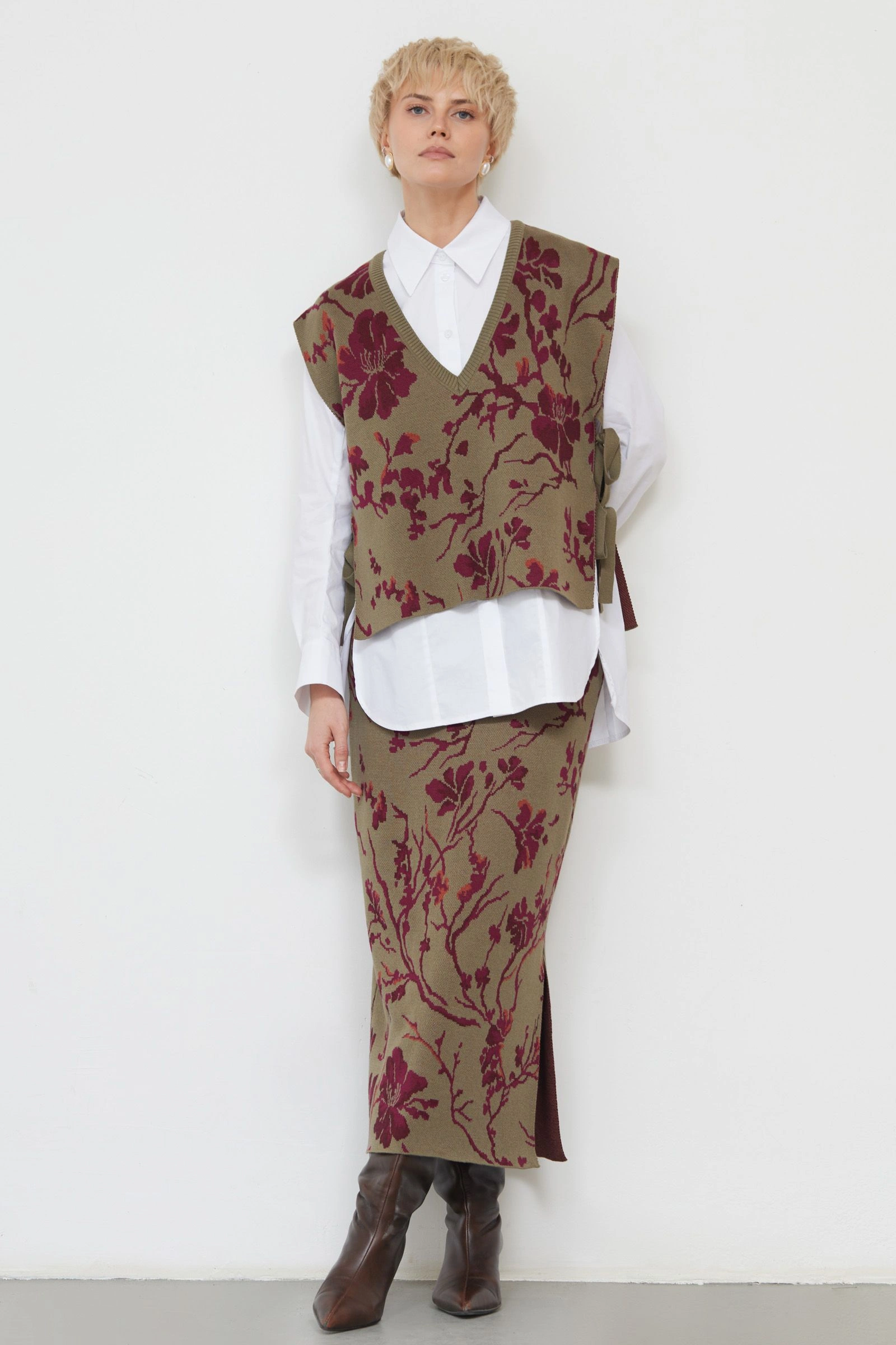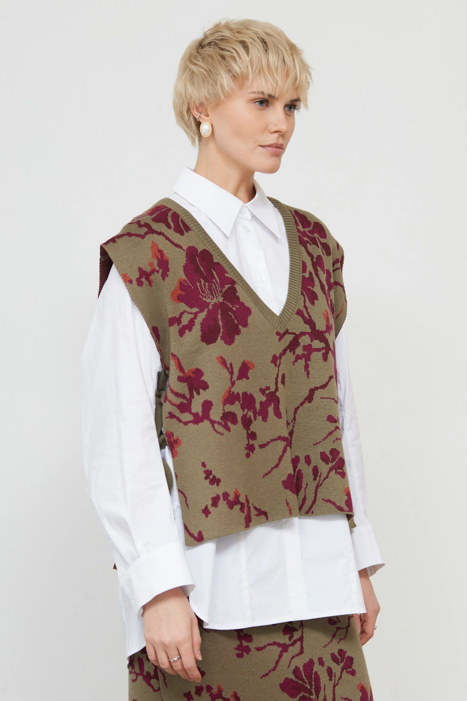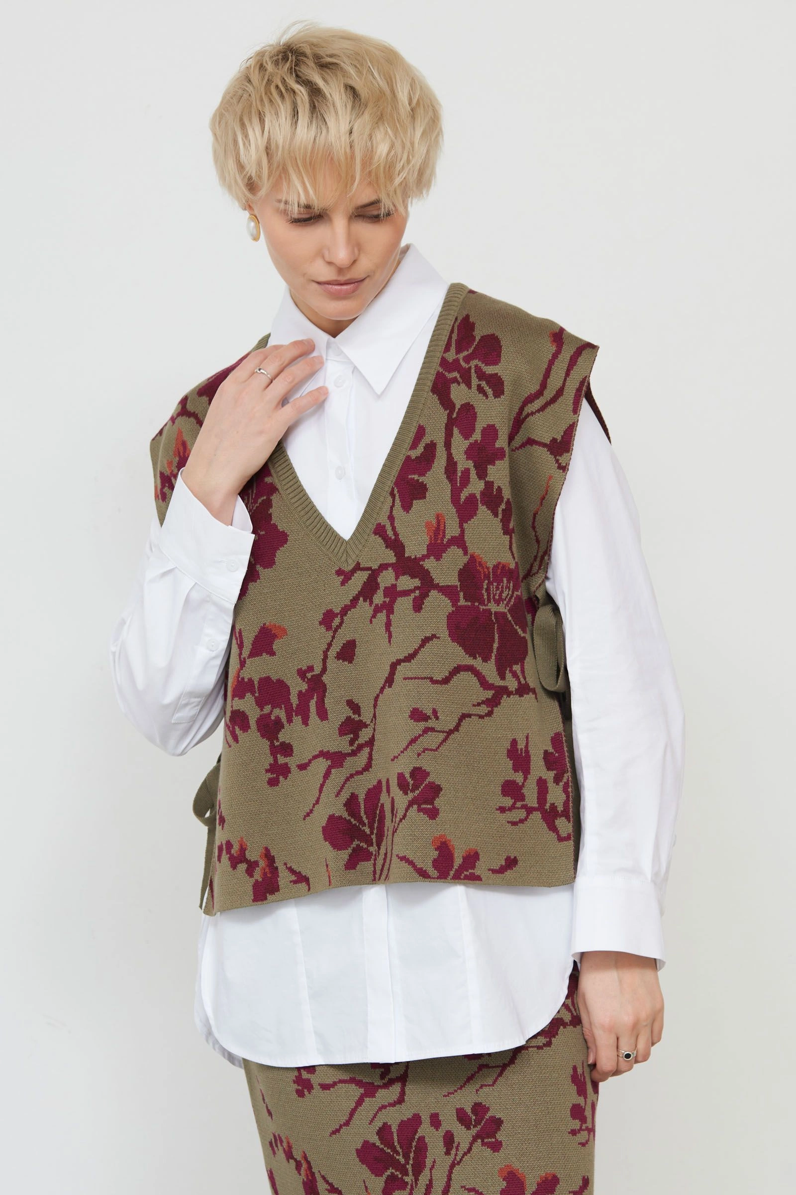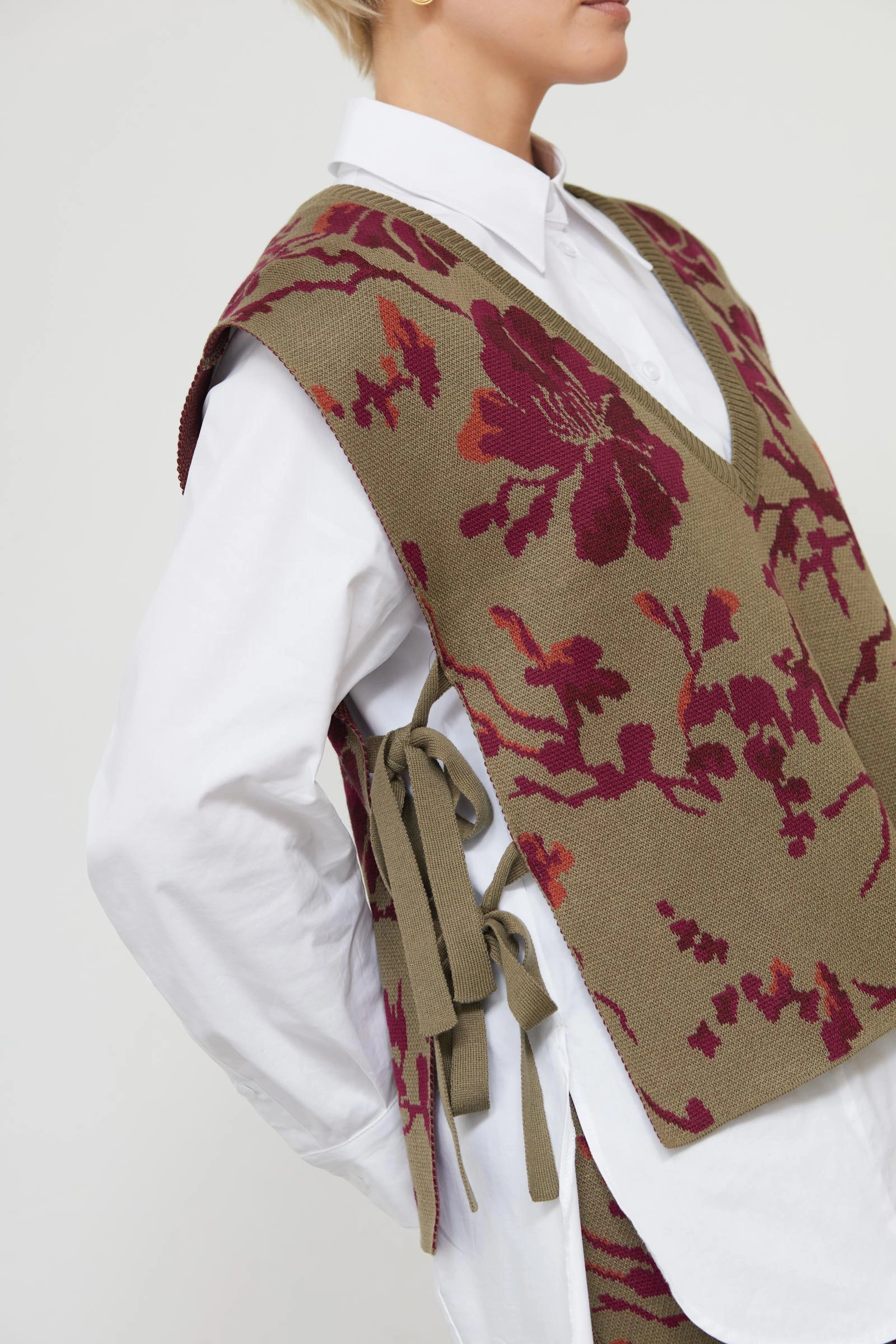Жилет на завязках с цветочным рисунком