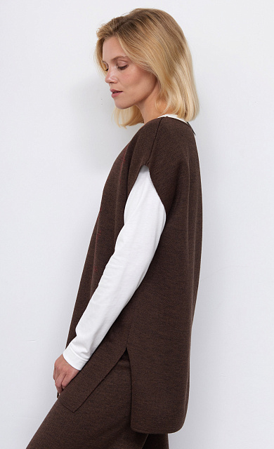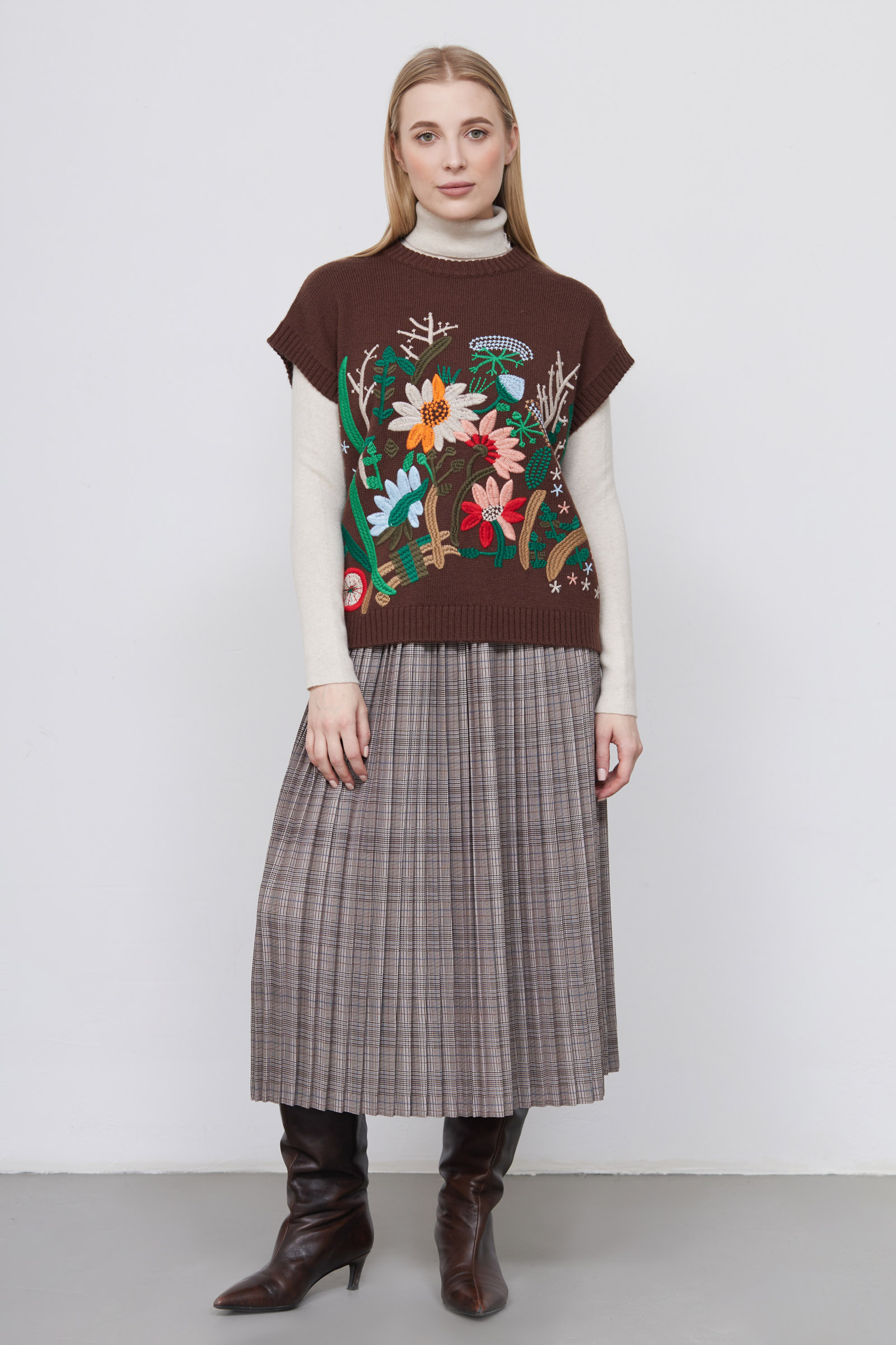 Жилет oversize из мягкой смесовой шерсти мериноса с цветочной вышивкой.