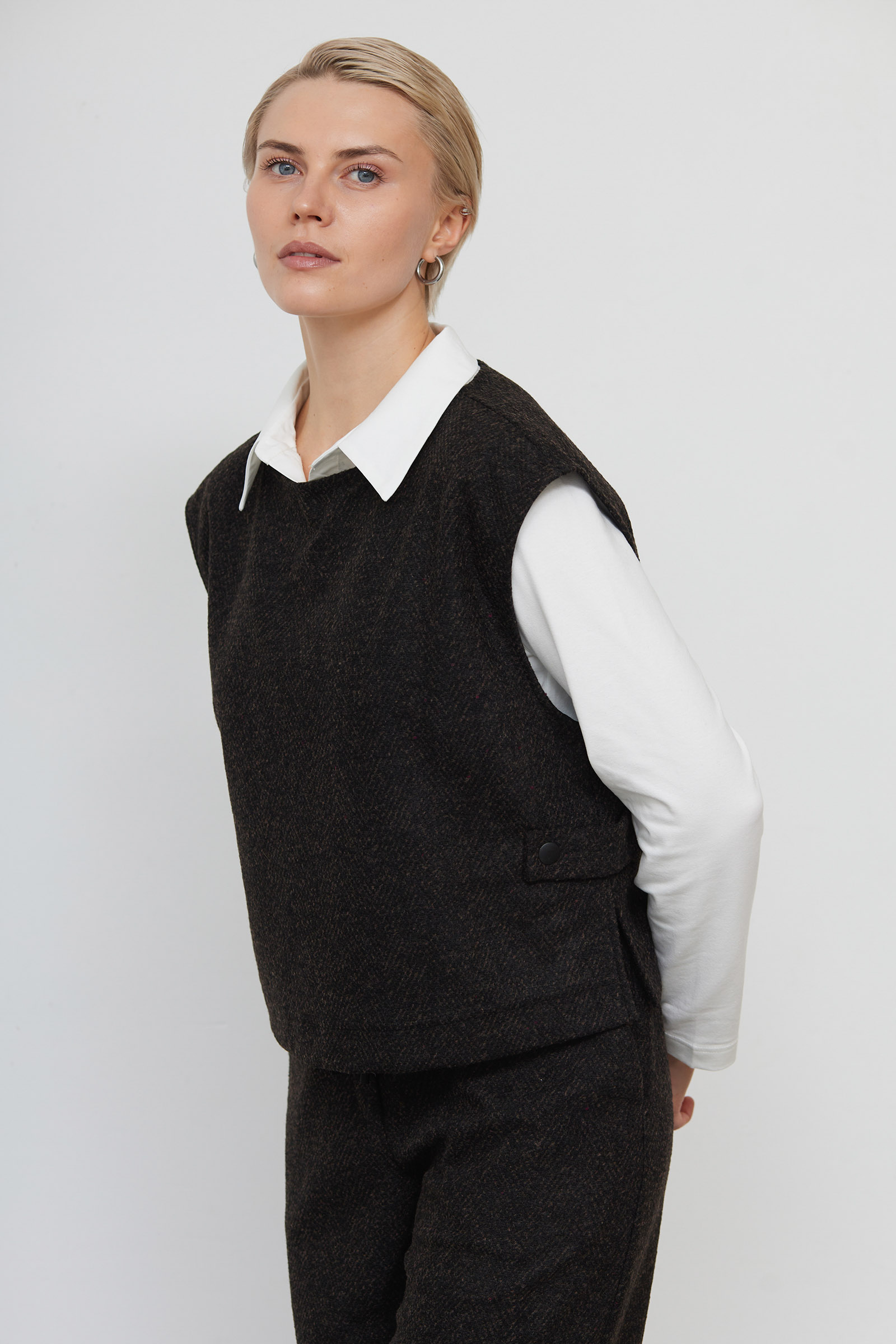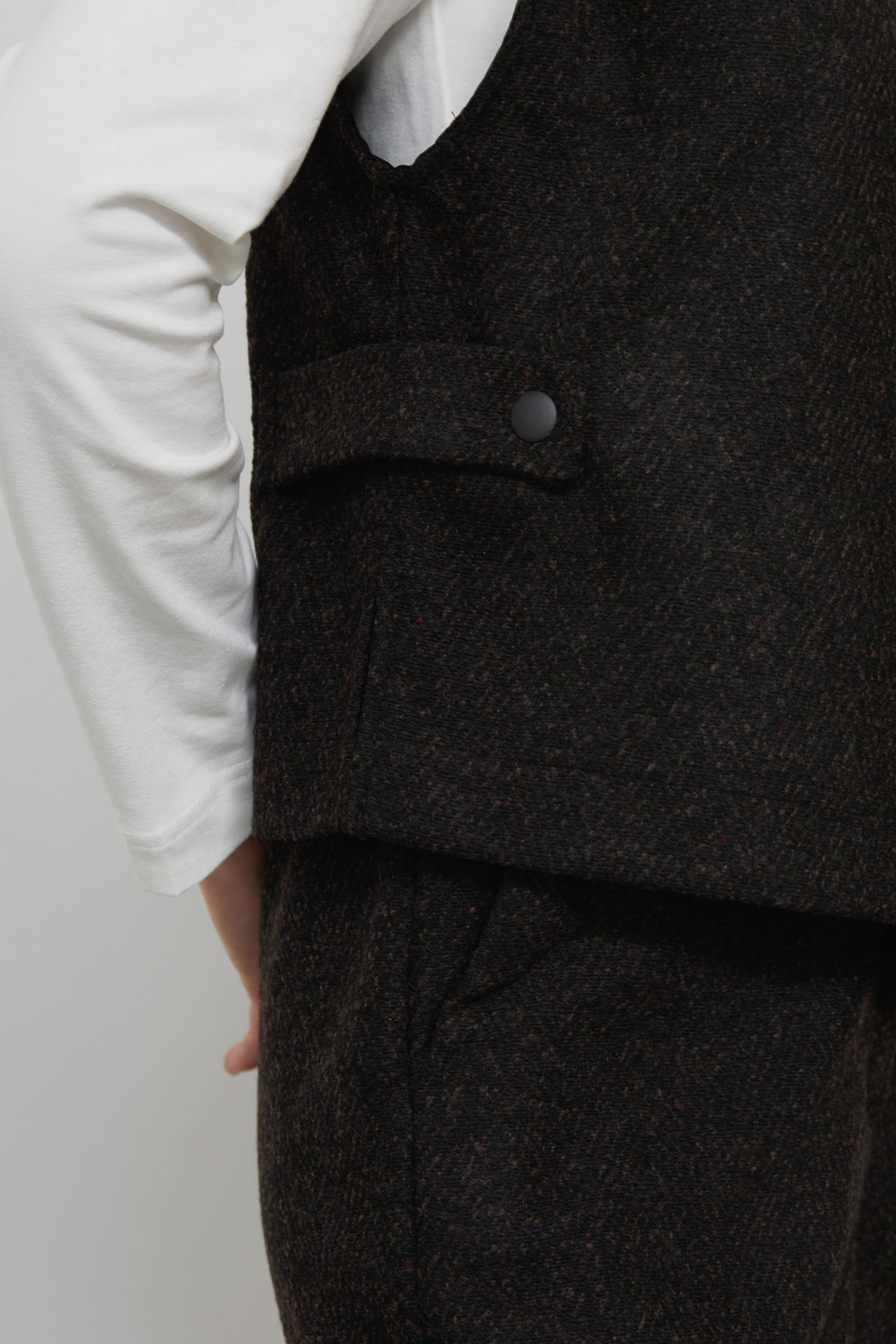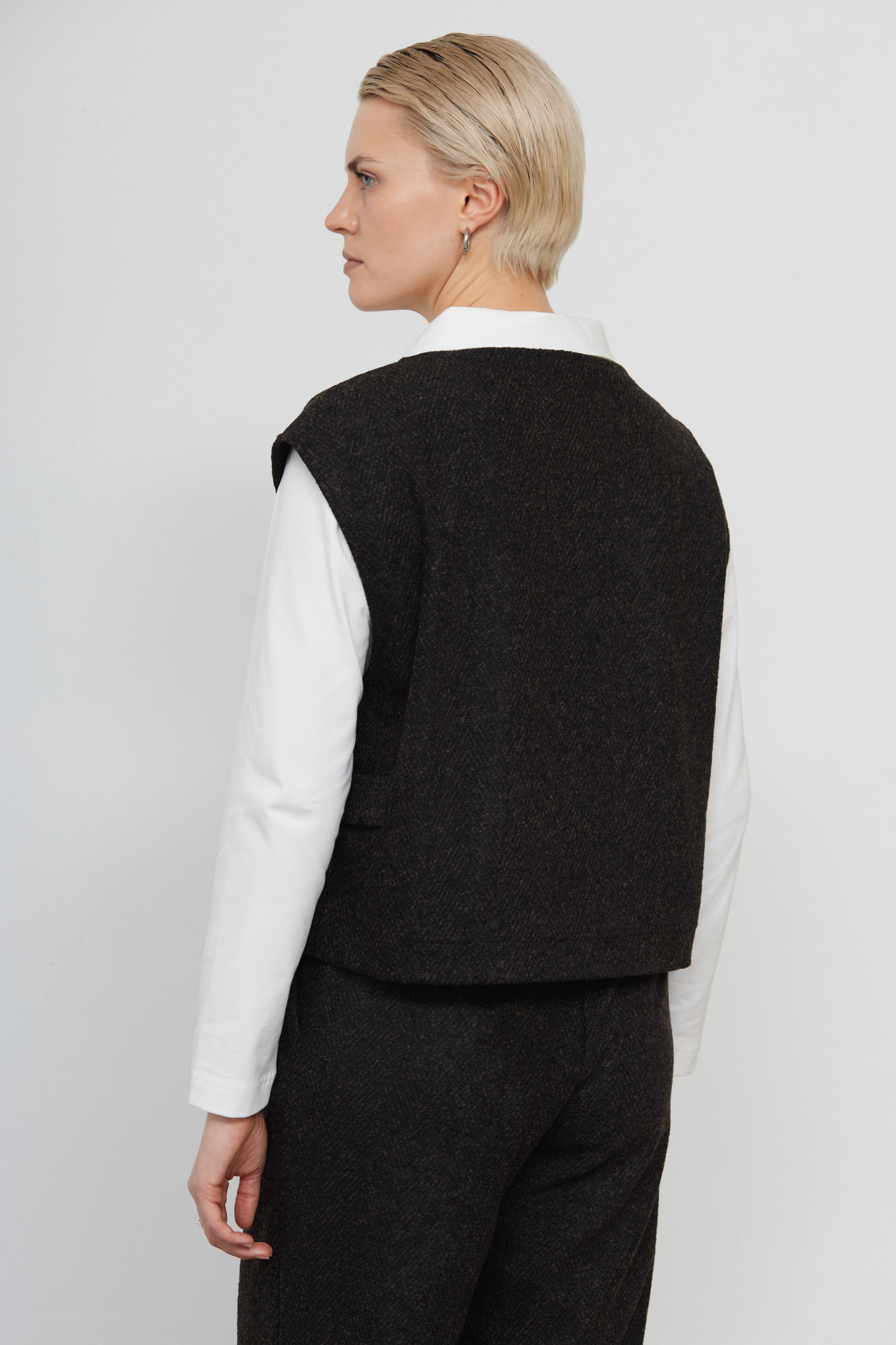 Жилет укороченный из костюмной ткани в елочку.